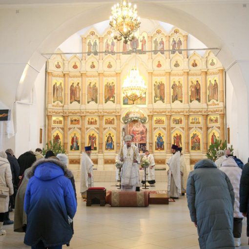 Его Преосвященству сослужили клирики Христорождественского кафедрального собора: священник Владимир Алейников, священник Владимир Васильев, священник Сергий Растрёпин, иеромонах Питирим (Сухов) и диакон Сергий Демидов.