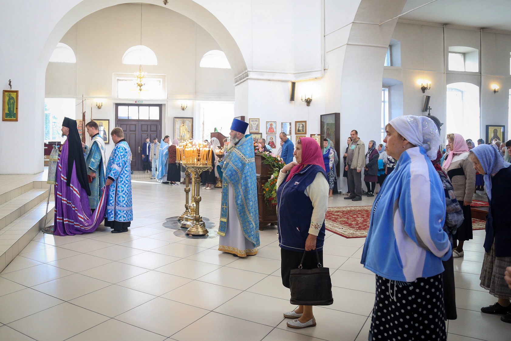 Его Преосвященству сослужили клирики собора: священник Виктор Кончаков, священник Владимир Васильев, священник Сергий Растрёпин, иеромонах Питирим (Сухов), диакон Сергий Демидов и диакон Алексий Сайганов.
