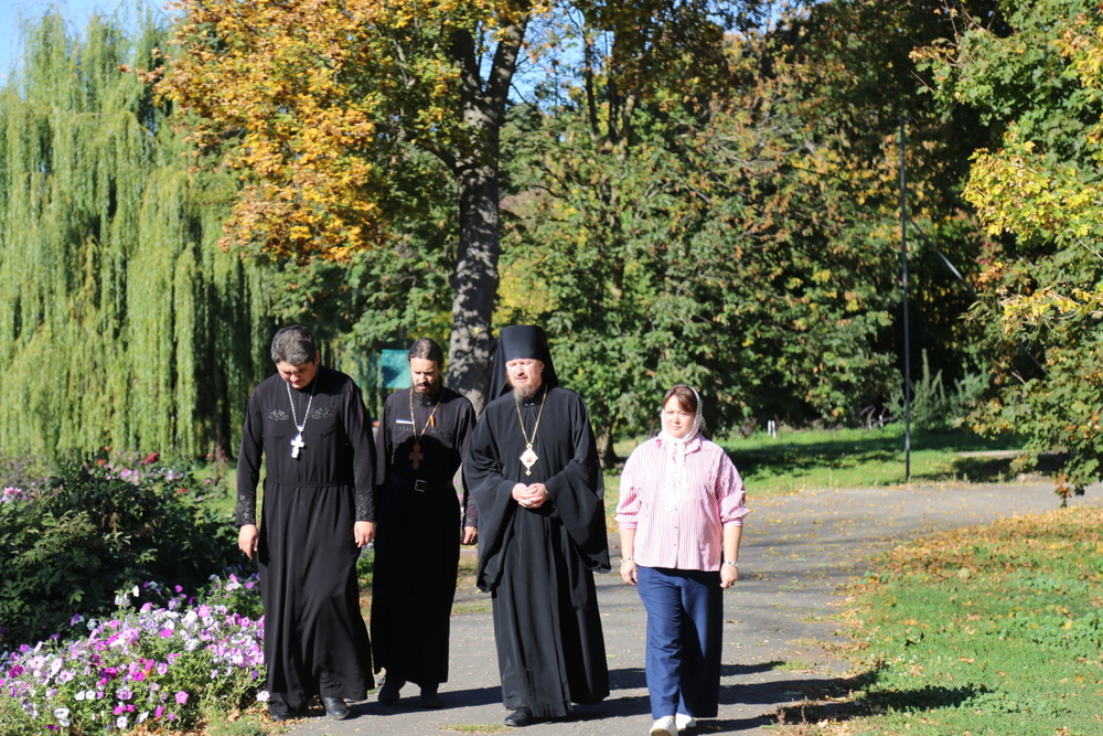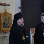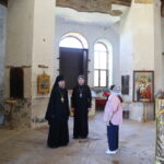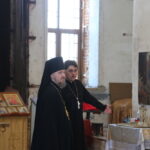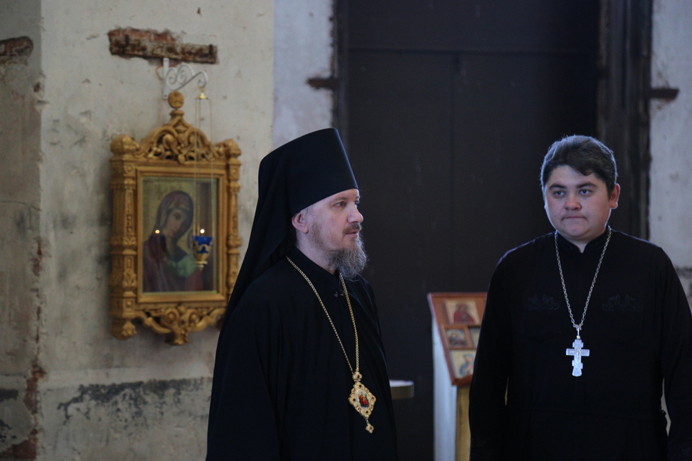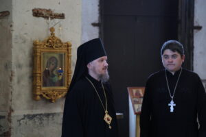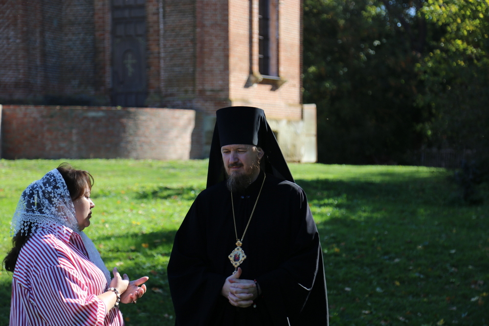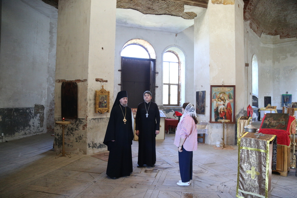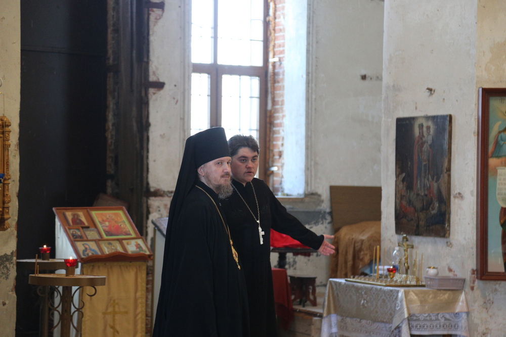 Владыка Игнатий, вместе с настоятелем храма Воскресения Христова священником Ярославом Кравченко и директором музея «Русская усадьба» Татьяной Стариковой, осмотрел дом Божий.