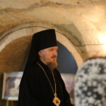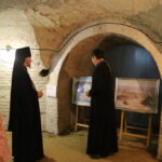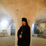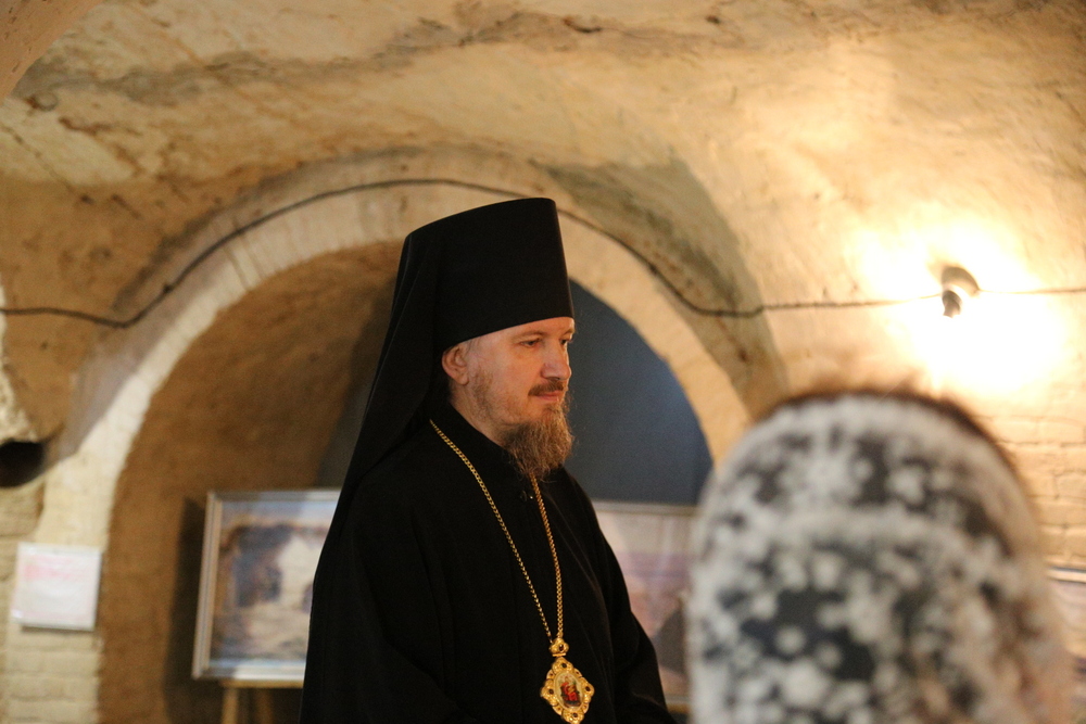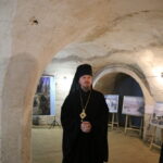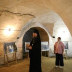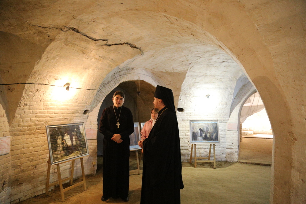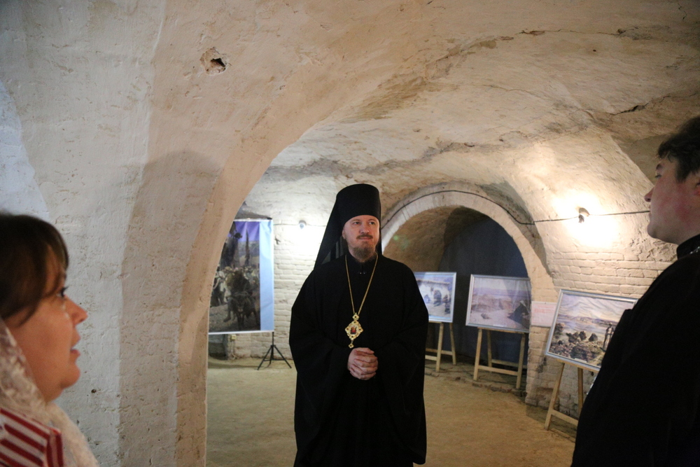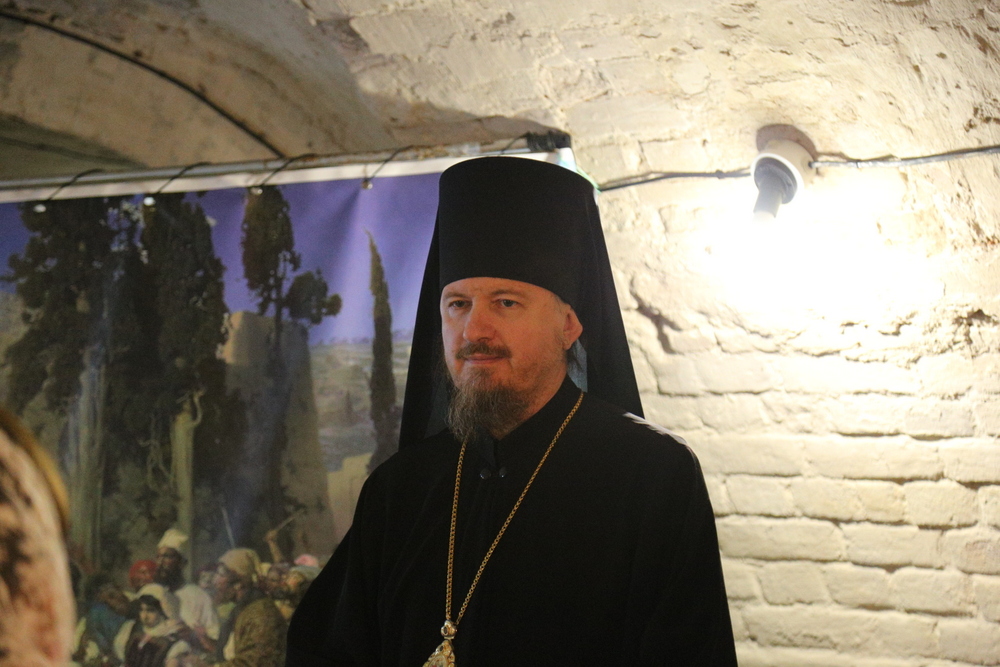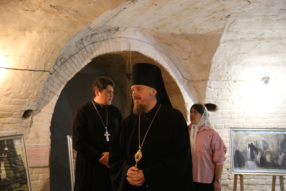 В подвальном помещении храма правящий архиерей ознакомился с выставкой картин об истории земной жизни Иисуса Христа в трактовке Василия Поленова «Евангельский мир глазами Василия Поленова».