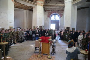 Затем в храме Воскресения Христова состоялся молебен на начало благого дела, которое совершили настоятель храма священник Ярослав Кравченко и иеромонах Питирим (Сухов).