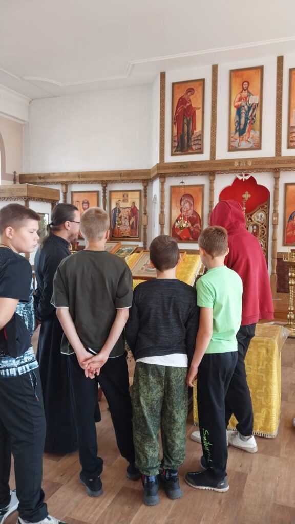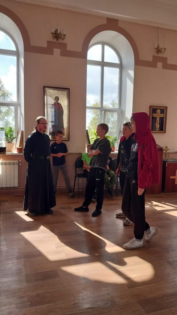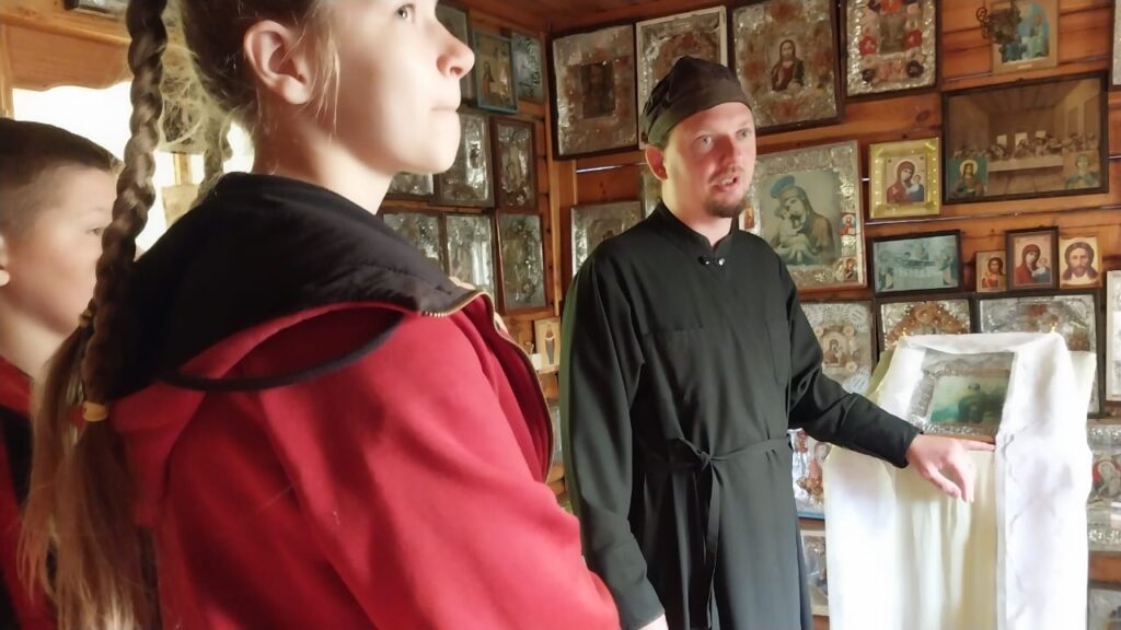 В часовне ребята помолились, попили воду из святого источника и послушали познавательную историю о нем. На обратном пути, паломники заехали в Спасо-Преображенский храм поселка Демьян Бедный, где их с радостью встретил Монах Дамаскин (Киреев). Он провел для них увлекательную экскурсию по храму, рассказав много интересного о его истории и архитектуре. Отец Дамаскин также угостил гостей традиционным травяным чаем и вкусным пирогом, подарив им чувство уюта и душевного тепла.