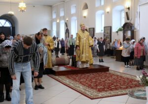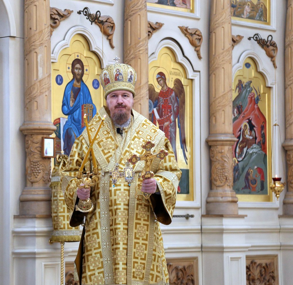 На сугубой ектении были вознесены особые прошения о защитниках Отечества нашего. После Преосвященнейший Владыка вознес молитву о Святой Руси.