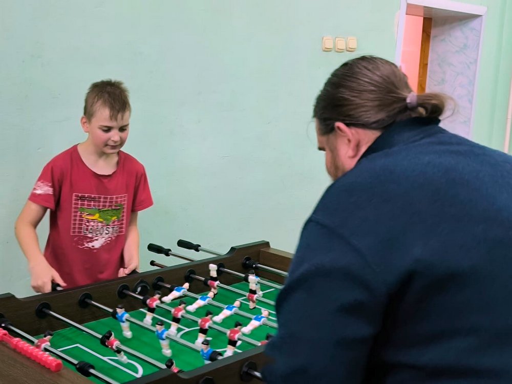 Визиты к детям в Центр поддержки семьи и помощи детям имени Г. В. Чичерина в селе Караул Инжавинского муниципального округа организуются практически ежемесячно. За это время духовенство и ребята стали добрыми приятелями. Тем радостнее и непринужденнее проходит общение. Следует сказать, что, в основном, провести досуг с детьми священники и их помощники приезжают в вечернее время, когда у ребят есть свободные часы. Именно тогда они могут поиграть в настольные игры, пообщаться группами или индивидуально, ответить на вопросы ребят.
