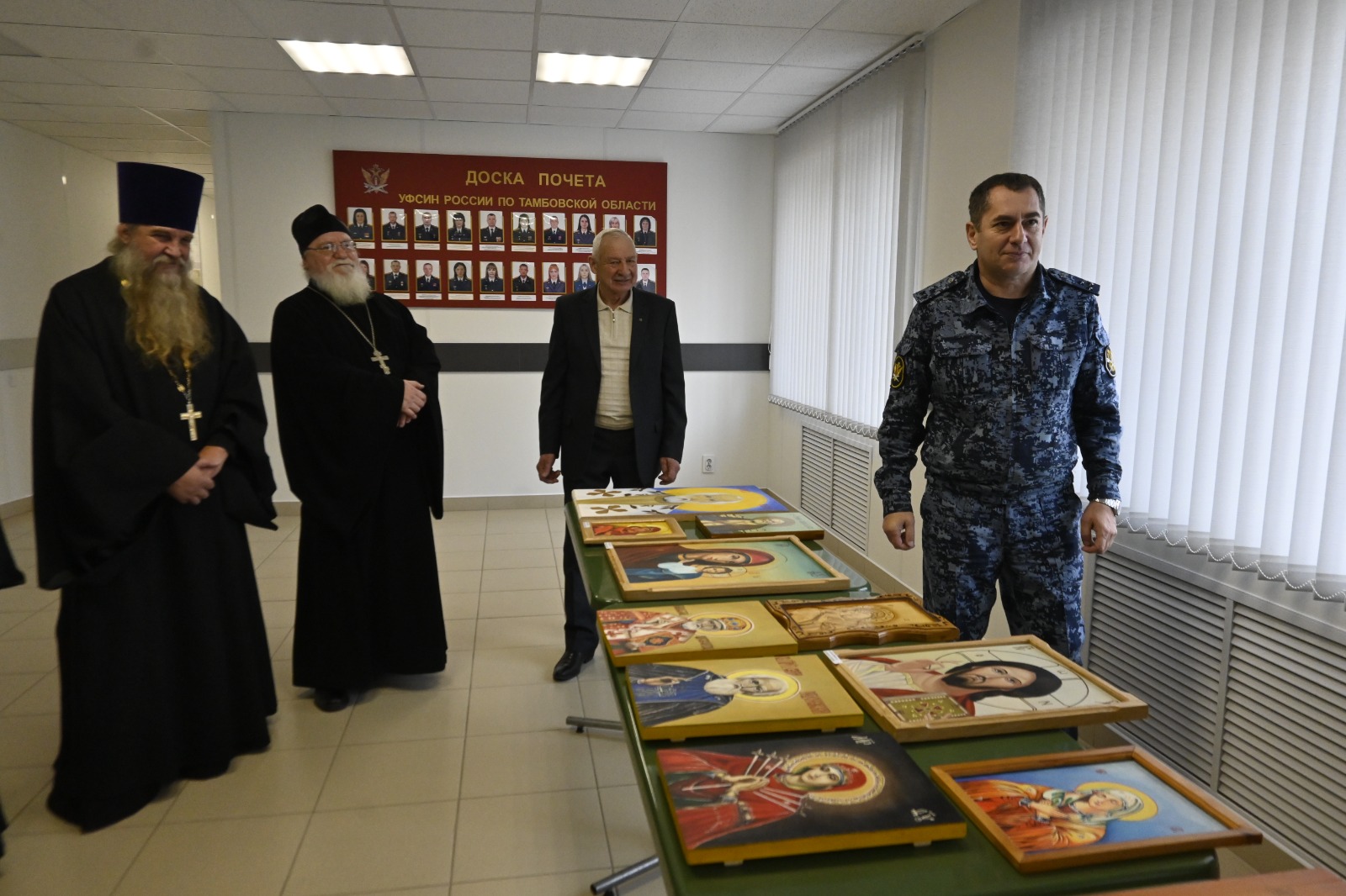 Священнослужители посетили выставку работ регионального этапа конкурса православной живописи «Явление», проводимого среди осужденных исправительных учреждений, организованную в одном из помещений Управления ФСИН России по Тамбовской области.