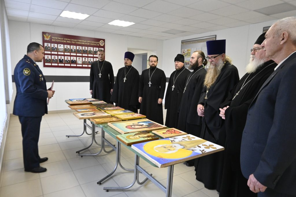 Священнослужители посетили выставку работ регионального этапа конкурса православной живописи «Явление», проводимого среди осужденных исправительных учреждений, организованную в одном из помещений Управления ФСИН России по Тамбовской области.