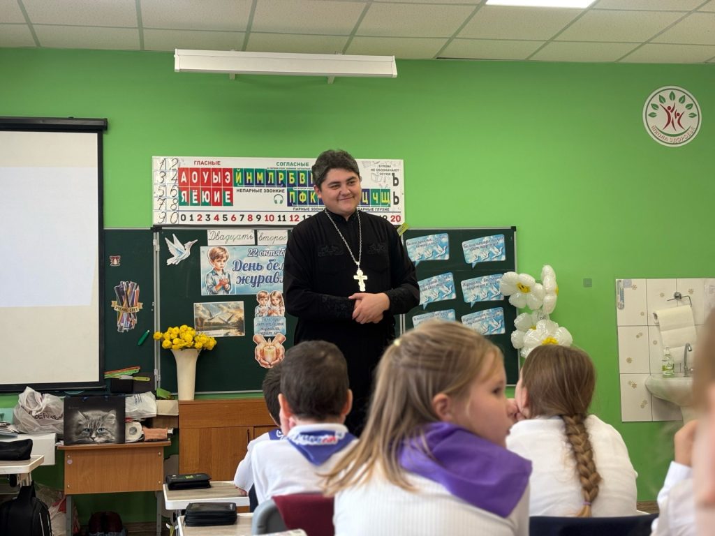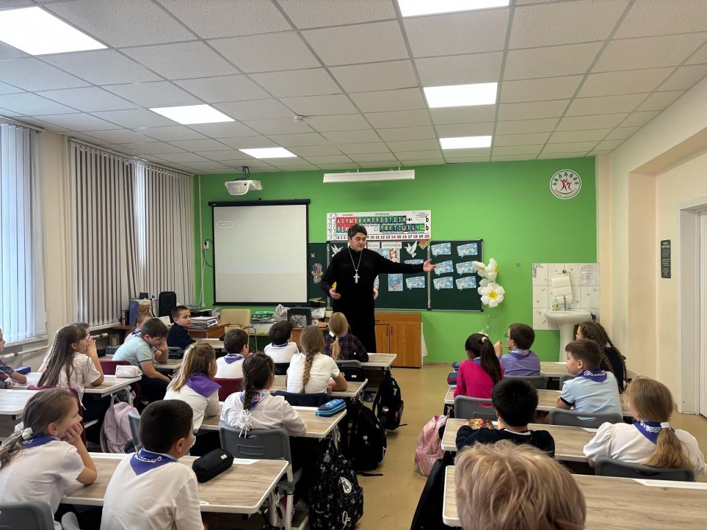 22 октября руководитель и сотрудник миссионерского отдела Уваровской епархии иеромонах Питирим (Сухов) и священник Ярослав Кравченко посетили третий корпус Уваровского лицея, где встретились с учащимися третьих и пятых классов. Темы беседы были, как всегда, жизненными: взаимоотношения с родителями и между собой, доброта и вера, настоящая дружба и взаимовыручка. Школьники, как обычно, задавали интересующие их вопросы и получали на них развернутые ответы.