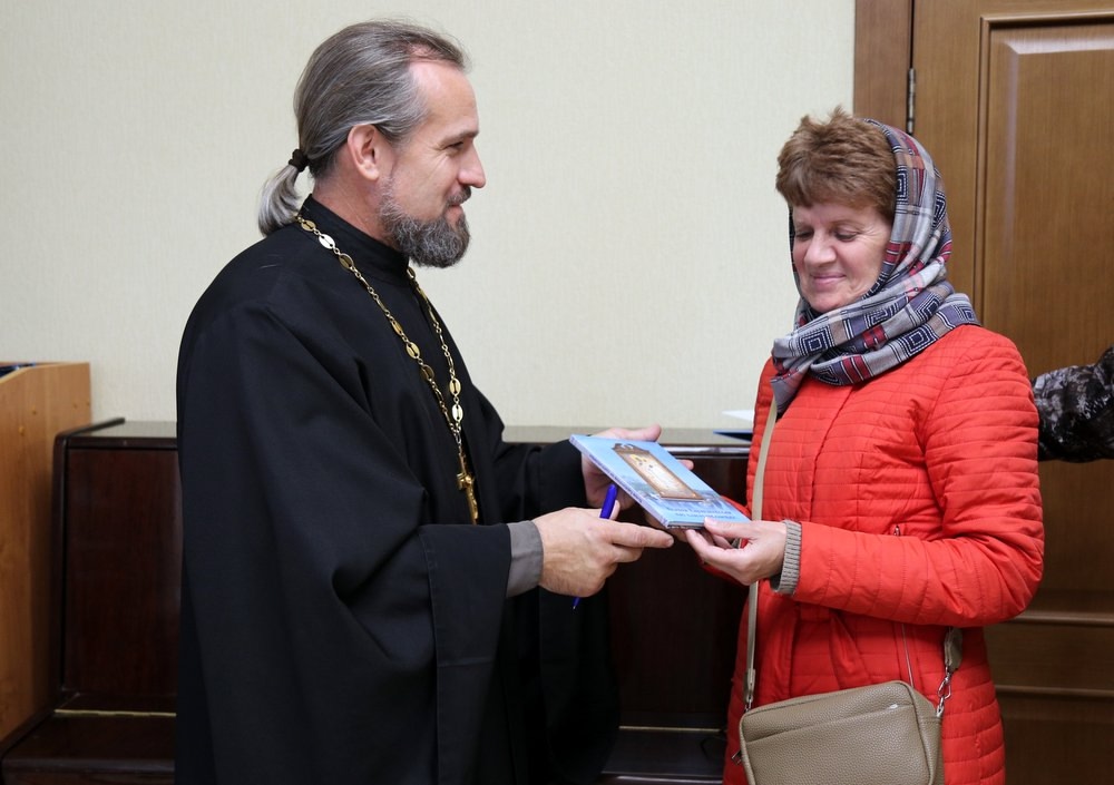 12 октября в духовно-просветительском центре «Преображение» города Уварово состоялась презентация книги о Карандеевской иконе Божией Матери «Иконою Карандеевскою нас благословляющая». Ее авторами-составителями стали историк, член Приходского совета Покровского храма р.п. Ржакса Раиса Цыганкова и руководитель отдела по социальному служению Уваровской епархии священник Владимир Алейников. На мероприятии присутствовал епископ Уваровский и Кирсановский Игнатий.