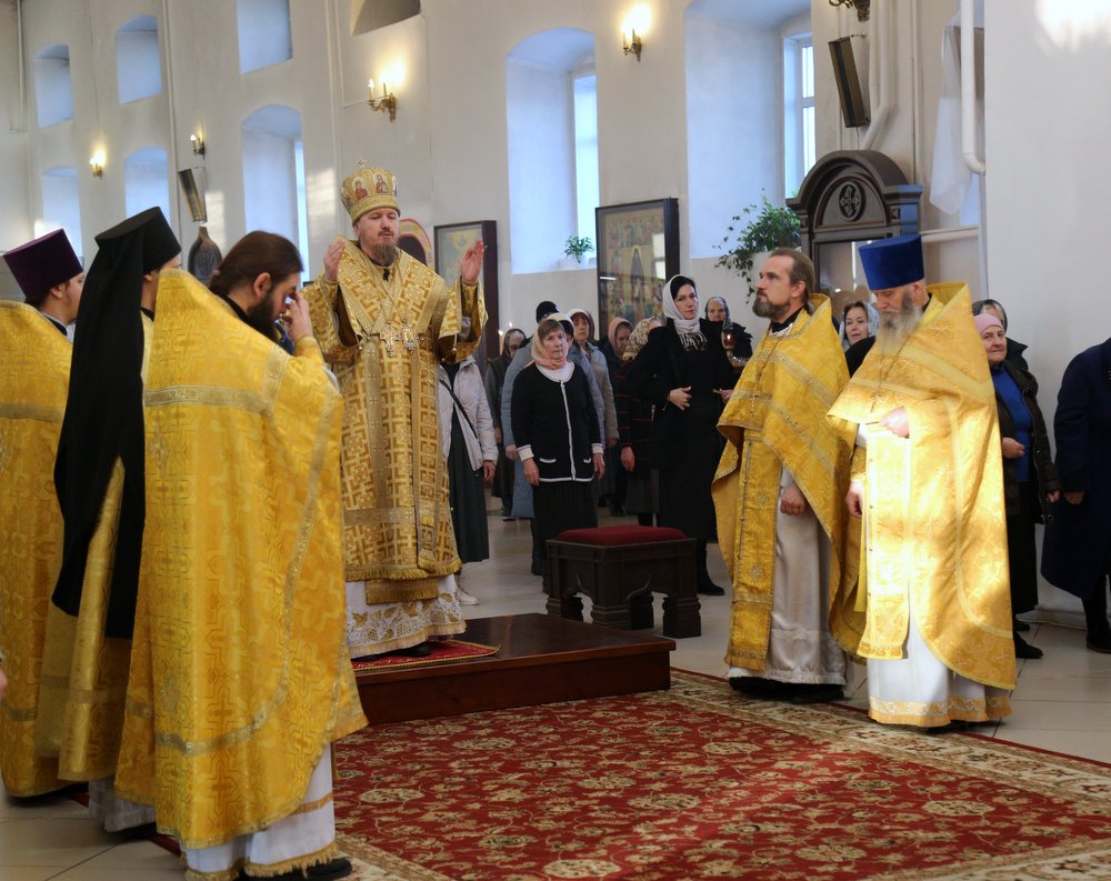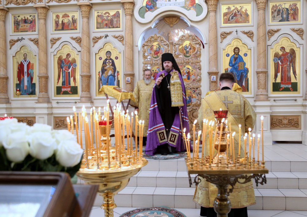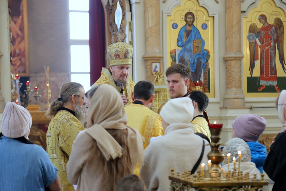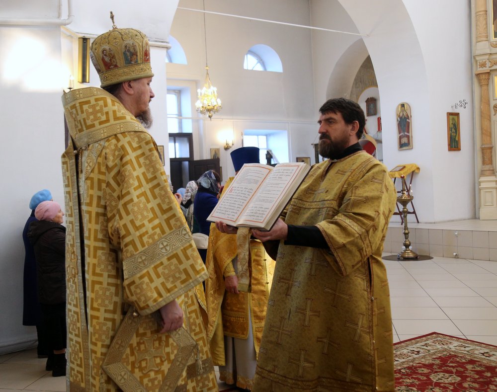 Его Преосвященству сослужили клирики собора, священники: Виктор Кончаков, Владимир Алейников, Владимир Васильев, Сергий Растрёпин, иеромонах Питирим (Сухов), диакон Сергий Демидов и Алексий Сайганов.