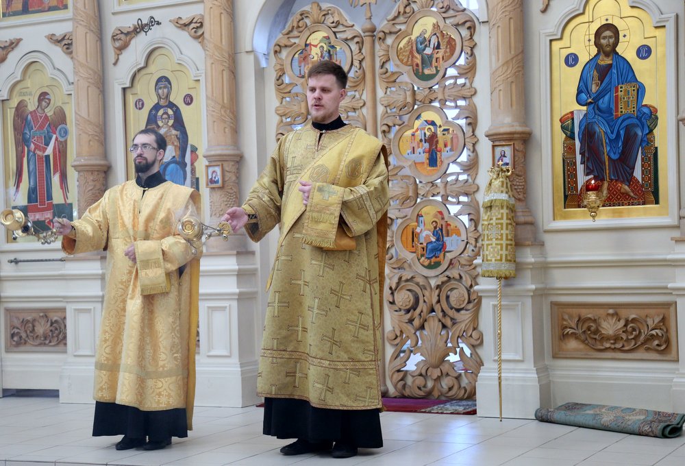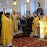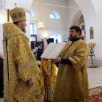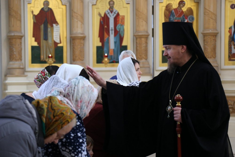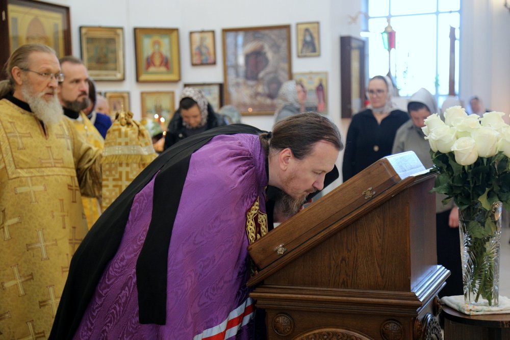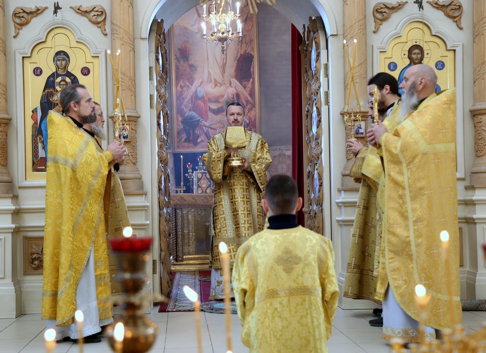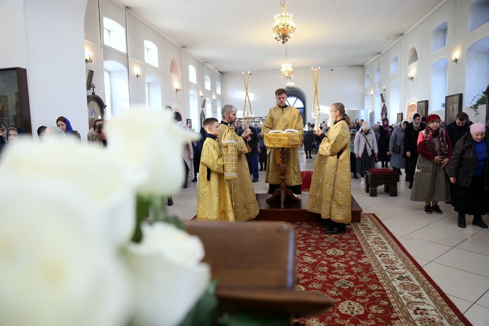 Его Преосвященству сослужили клирики собора, священники: Виктор Кончаков, Владимир Алейников, Владимир Васильев, Сергий Растрёпин, иеромонах Питирим (Сухов), диакон Сергий Демидов и Алексий Сайганов.