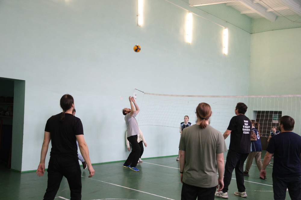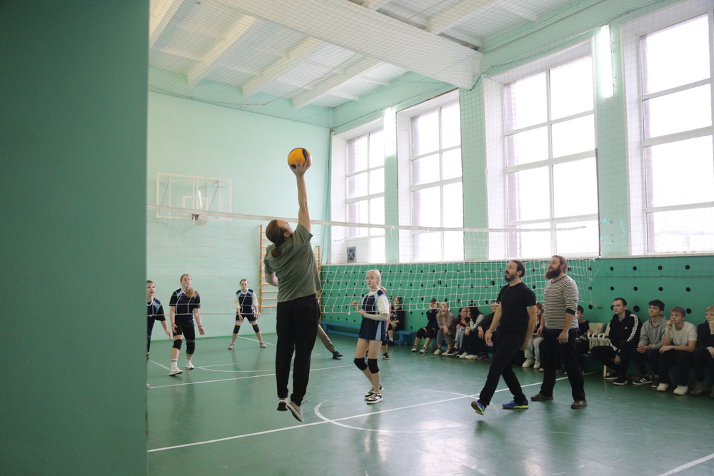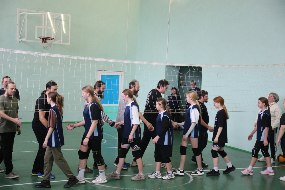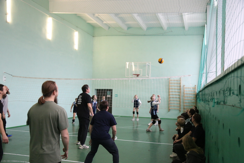 После уроков состоялся товарищеский матч по волейболу между священнослужителями и учащимися. Этот спортивный поединок позволил создать атмосферу дружбы и взаимопонимания между участниками.
