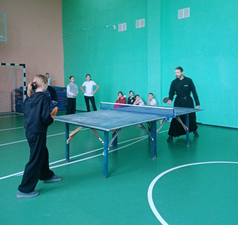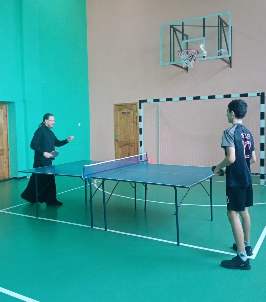 С ребятами этой школы духовенство уже знакомо. Поэтому дети с радостью пообщались на разные темы с монахами. Отец Питирим и отец Дамаскин ответили на вопросы о добре и зле, дружбе, нравственности, разъяснили детям вопросы о вечности жизни, бытия и другие. А после духовных бесед состоялись дружеские игры в настольный теннис.