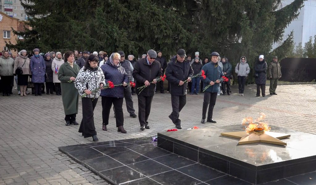 Завершился торжественный митинг возложением цветов к Вечному огню.
