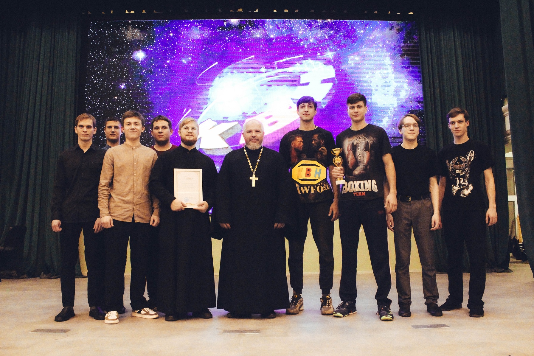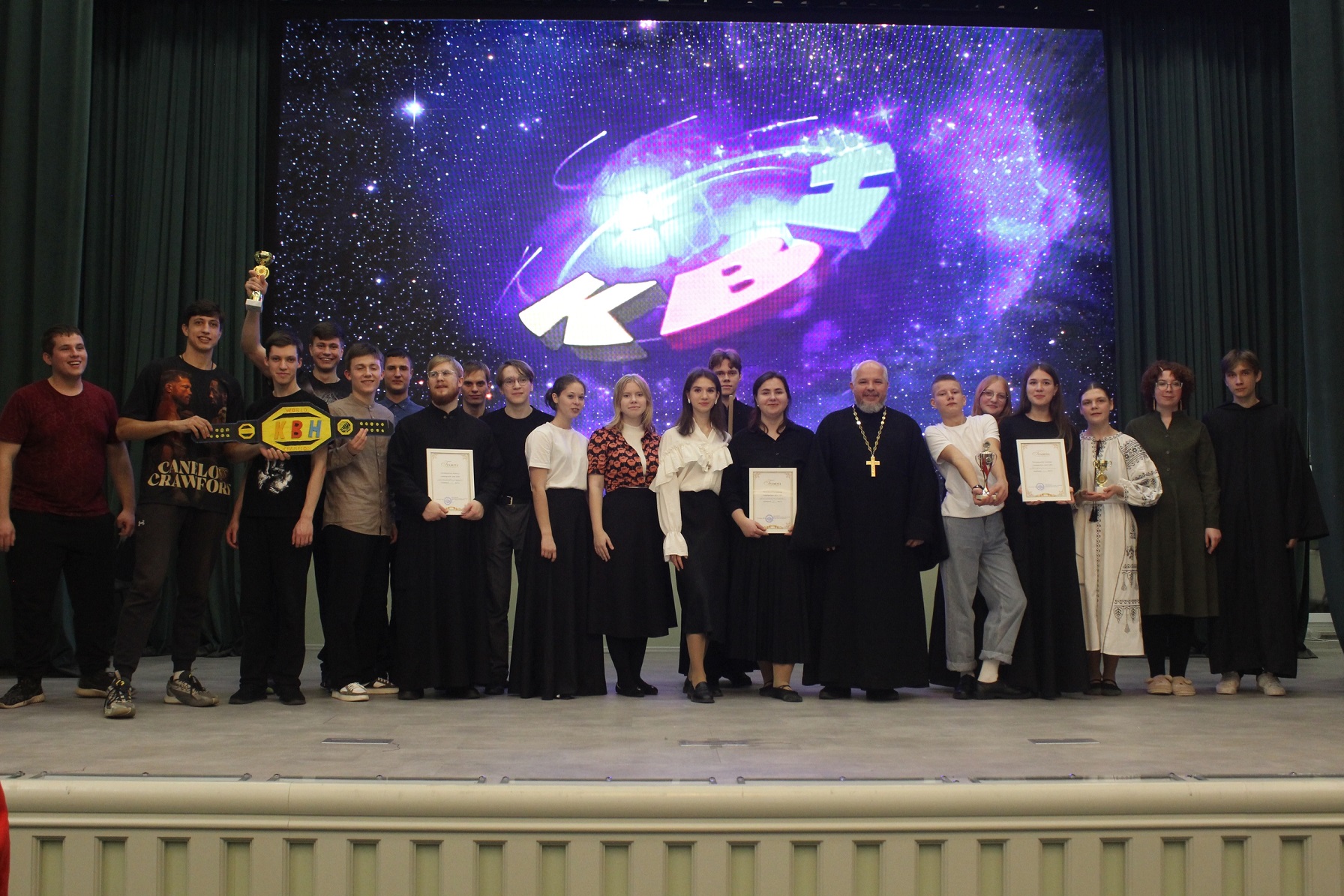 В этом году в Семинарской Лиге КВН приняли участие три команды: “Фаворитки” (объединение православной молодежи), “Дирижеры юмора” (регентское отделение семинарии) и “ПрожорлИвые старцы” (студенты семинарии), в составе которых были в том числе и представители уваровской молодёжи.