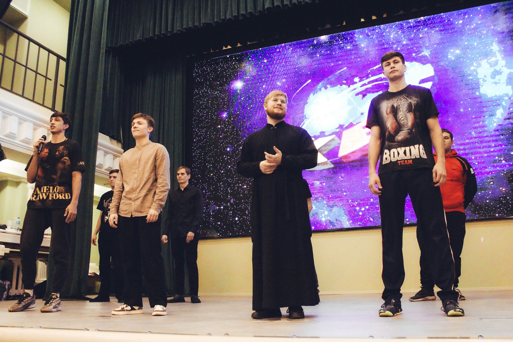 Вечером того же дня уваровская молодежь посетила Семинарскую Лигу КВН. На мероприятии присутствовали преподаватели и студенты семинарии и других учебных заведений, а также гости со всей области. С приветственным словом к присутствующим обратился врио ректора Тамбовской духовной семинарии иерей Виталий Щербаков.