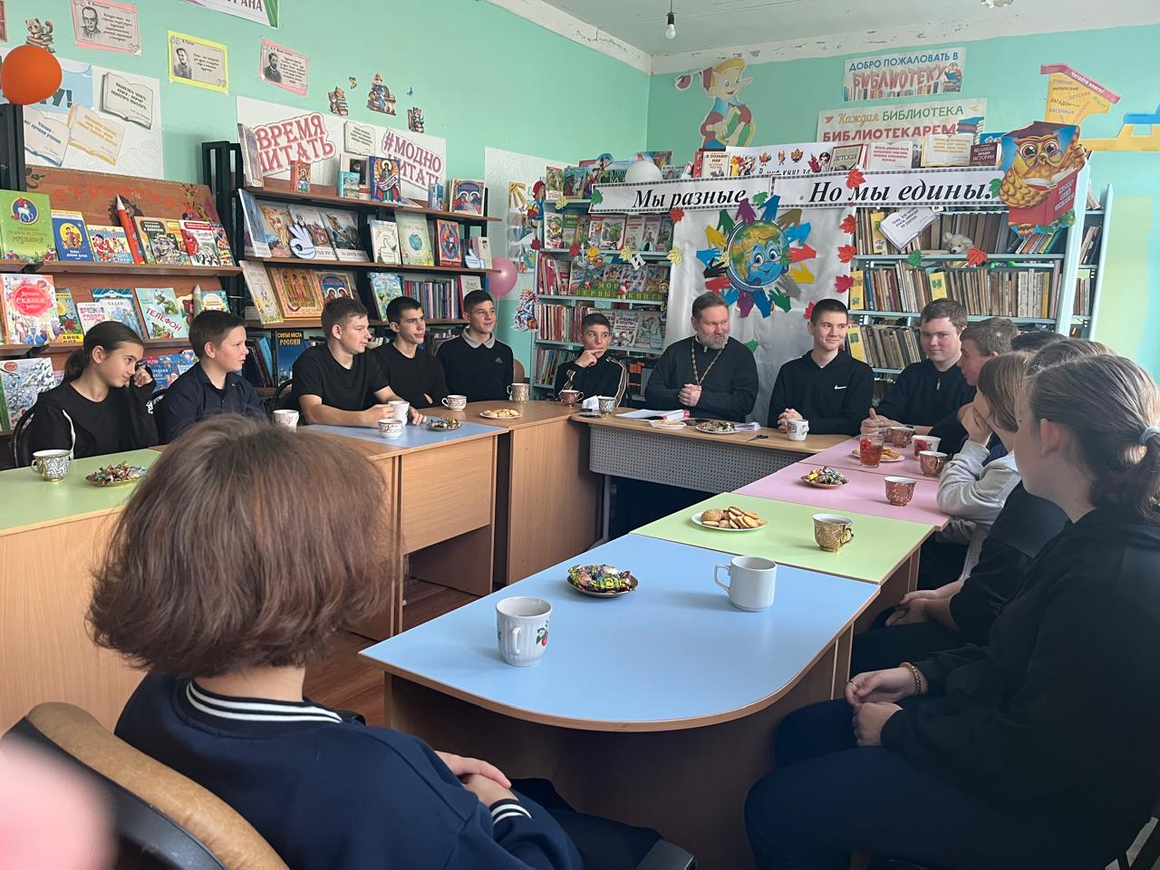 памяти Казанской иконы Божией Матери в сельской библиотеке села Осино-Гаи Гавриловского благочиния для юных читателей прошла познавательная встреча «Мы разные, но мы едины». На мероприятие был приглашен настоятель Знаменского храма протоиерей Роман Иванов.