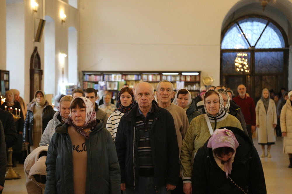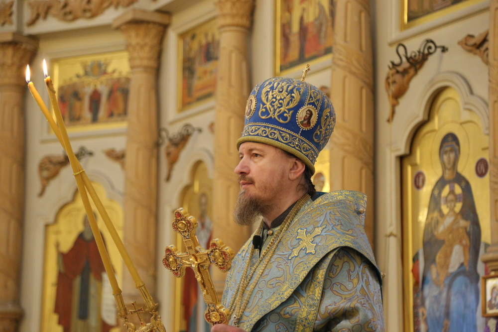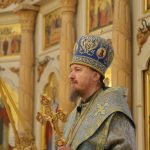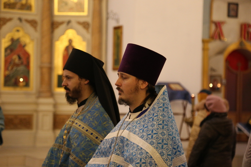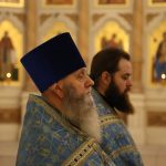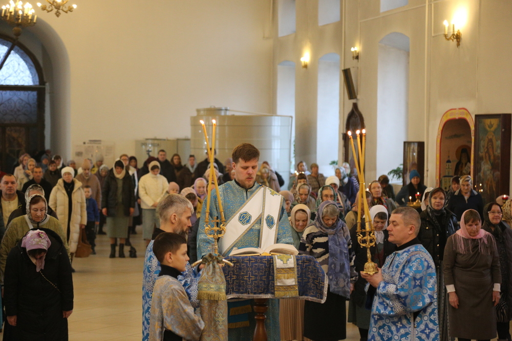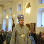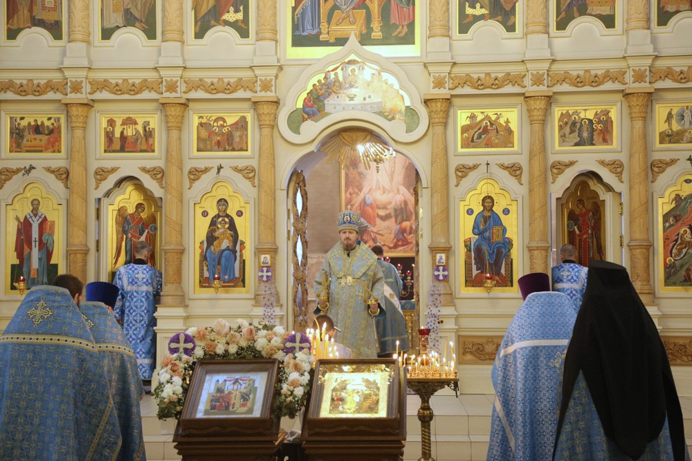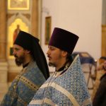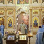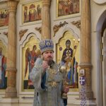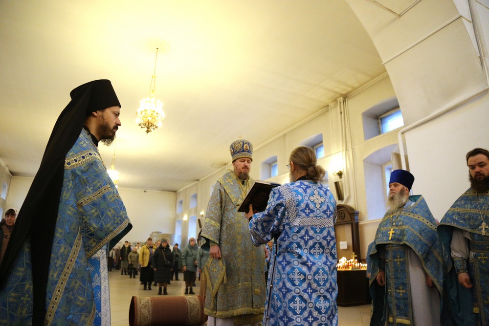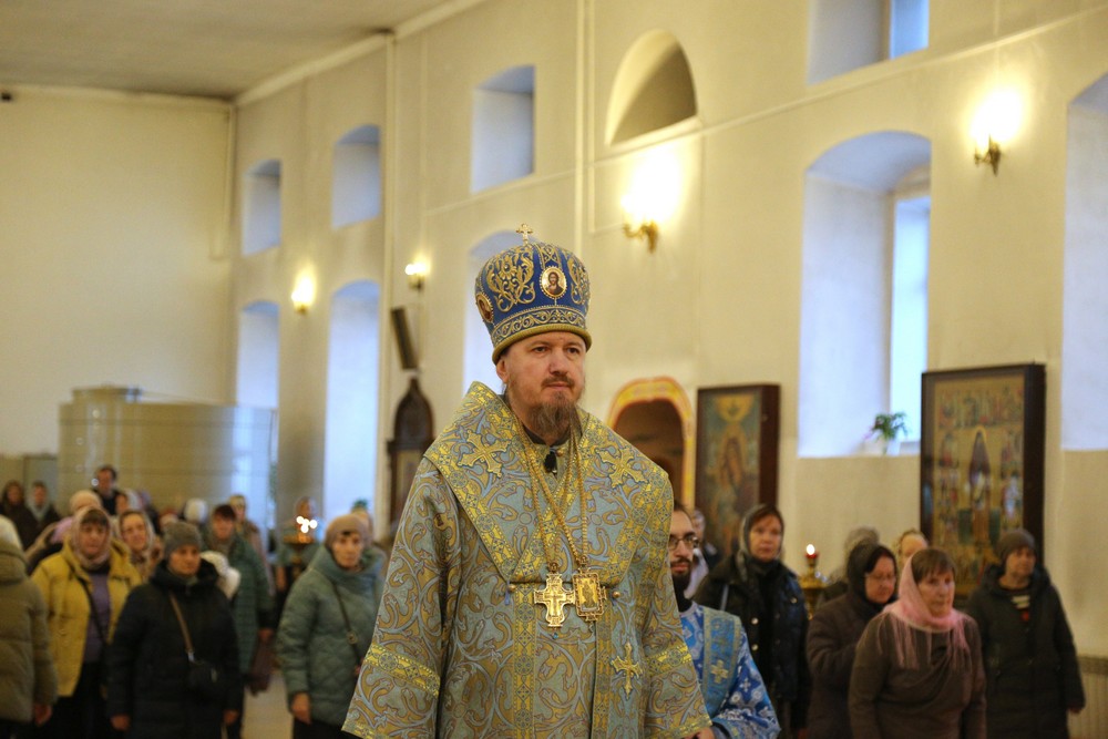 Его Преосвященству сослужили клирики собора: иеромонах Питирим (Сухов), священник Виктор Кончаков, священник Владимир Васильев, священник Сергий Растрёпин, диакон Сергий Демидов и диакон Алексий Сайганов.