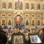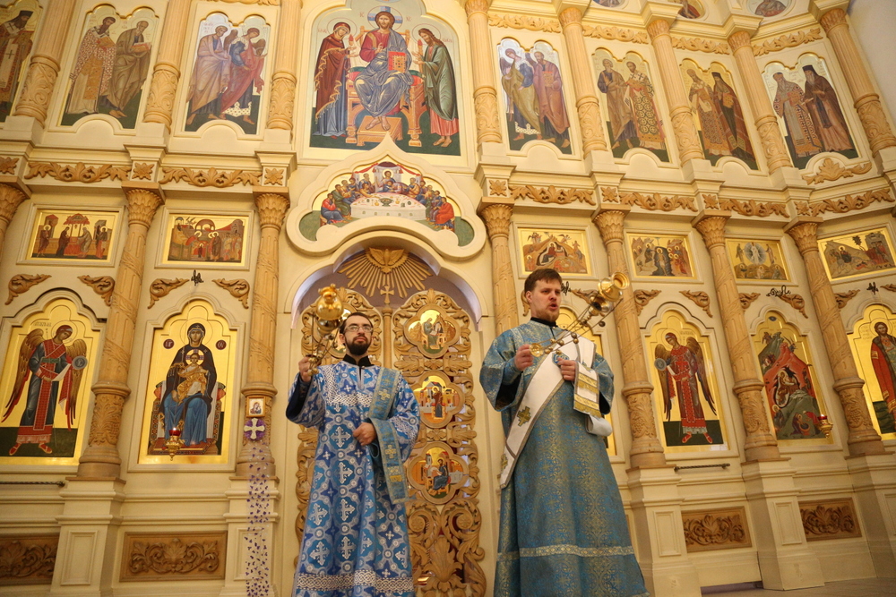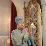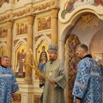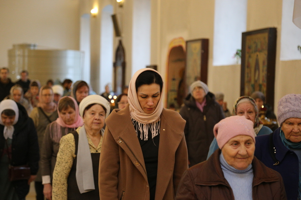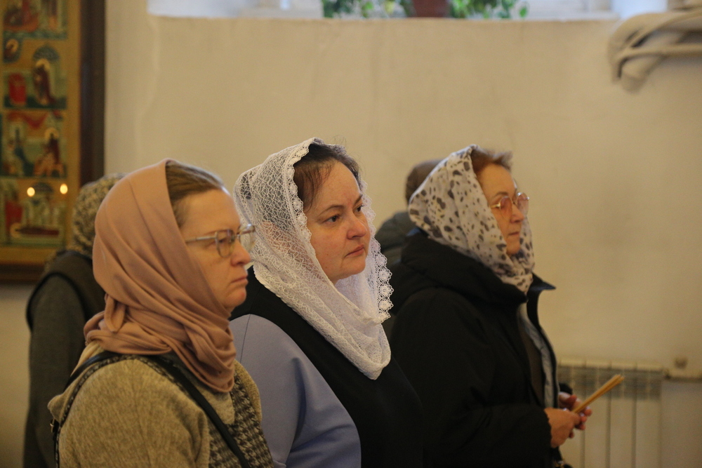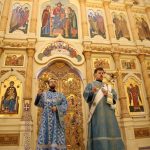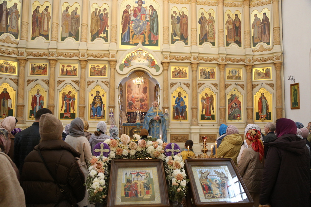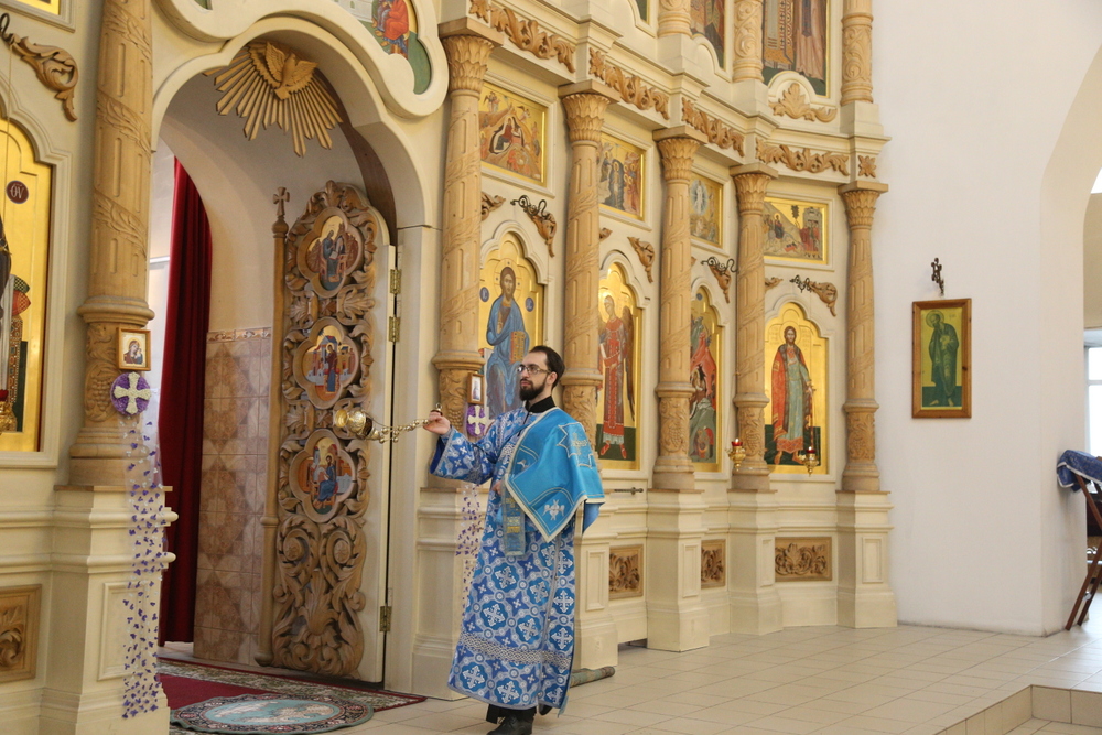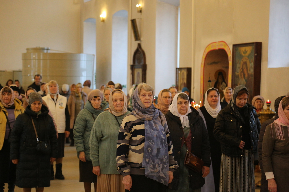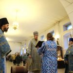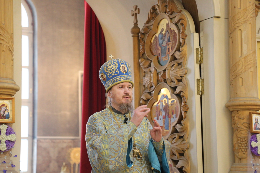 Его Преосвященству сослужили клирики собора: иеромонах Питирим (Сухов), священник Виктор Кончаков, священник Владимир Васильев, священник Сергий Растрёпин, диакон Сергий Демидов и диакон Алексий Сайганов.