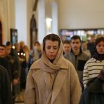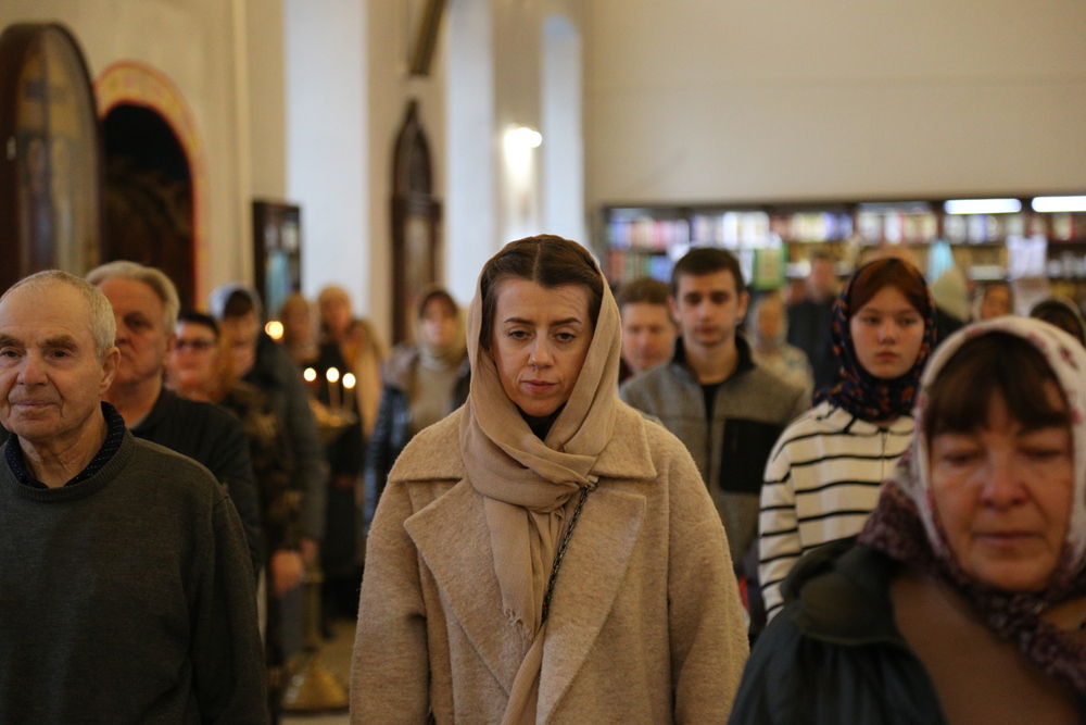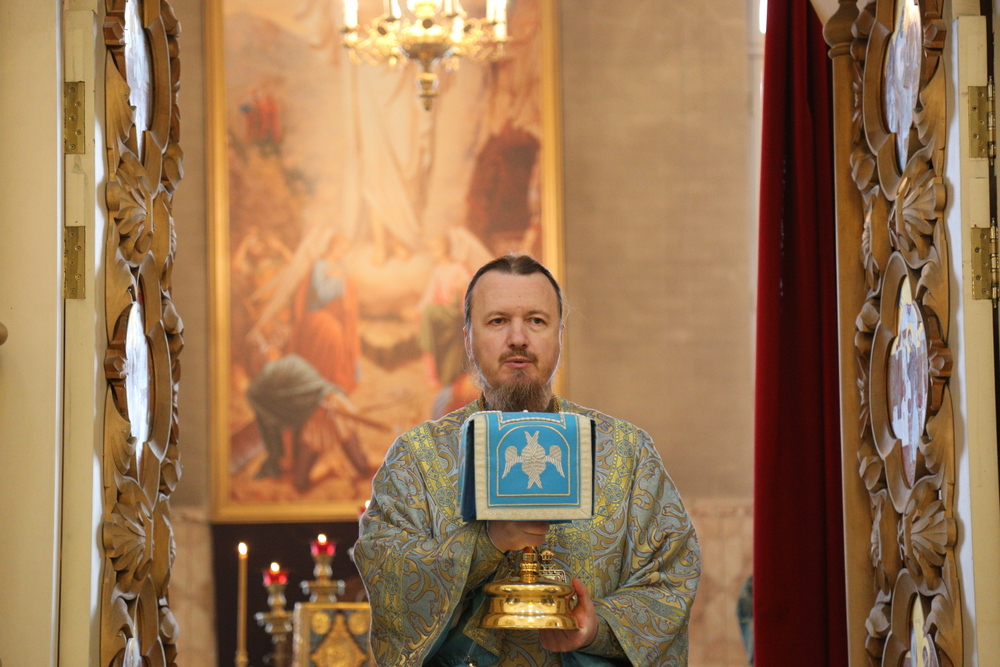 По завершении богослужения клирик собора священник Владимир Васильев поздравил верующих с воскресным днем и обратился ко всем присутствующим со словами наставления.