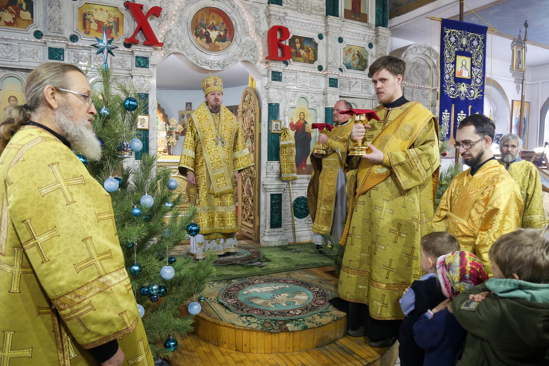 28 декабря, в Неделю 29-ю по Пятидесятнице, святых праотец, епископ Уваровский и Кирсановский Игнатий совершил Божественную литургию в Покровском храме рабочего поселка Мучкапский. Визит правящего Архиерея стал долгожданным и радостным событием для всех прихожан. Вместе с настоятелем они встречали Владыку по старой русской традиции хлебом-солью.