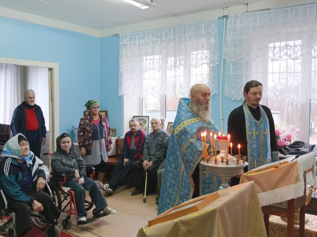 Молебен, по традиции, состоялся в молельной комнате дома-интерната. Всеобщей молитвой проживающие прославляли Деву Марию. После нее отец Владимир обратился к присутствующим с проповедью, в которой поздравил проживающих и коллектив дома-интерната с праздником Введения во храм Пресвятой Богородицы, пожелал им здоровья, сил, помощи Божией и заступничества Пресвятой Богородицы во всех благих делах и начинаниях. Подобные визиты в дом-интернат духовенством Уваровской епархии совершаются на постоянной основе.