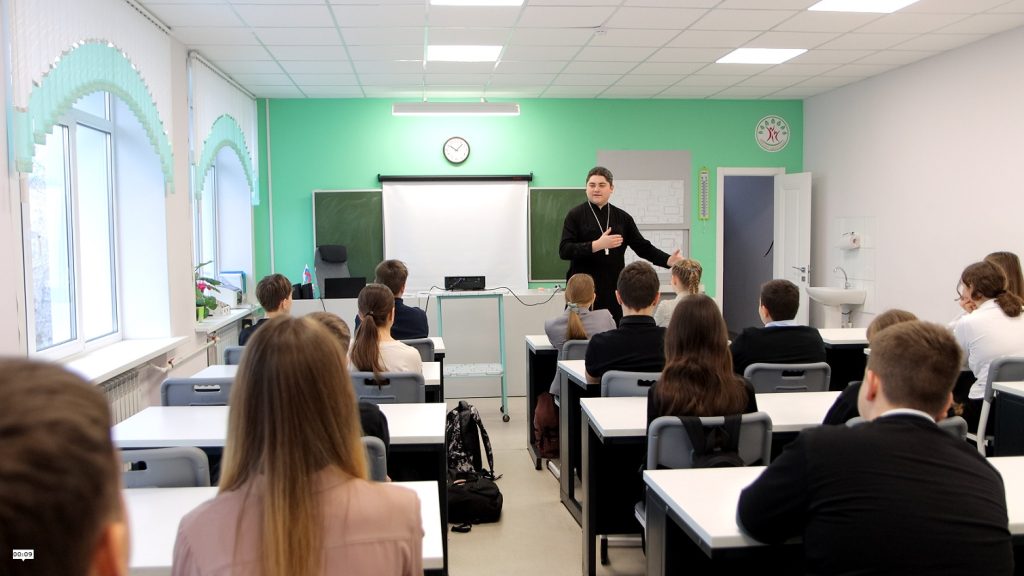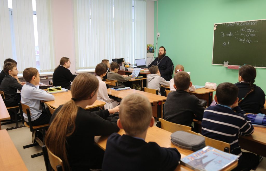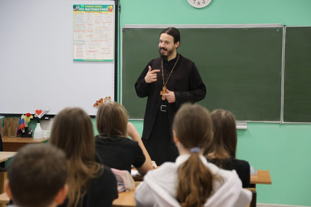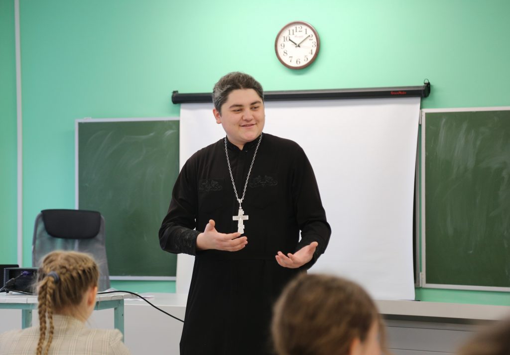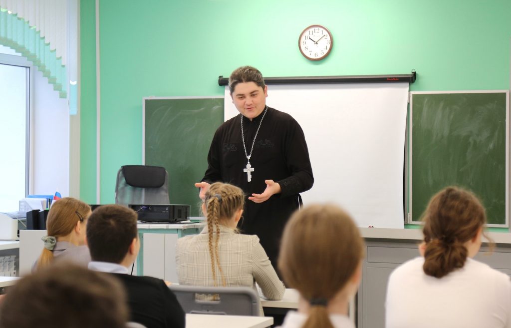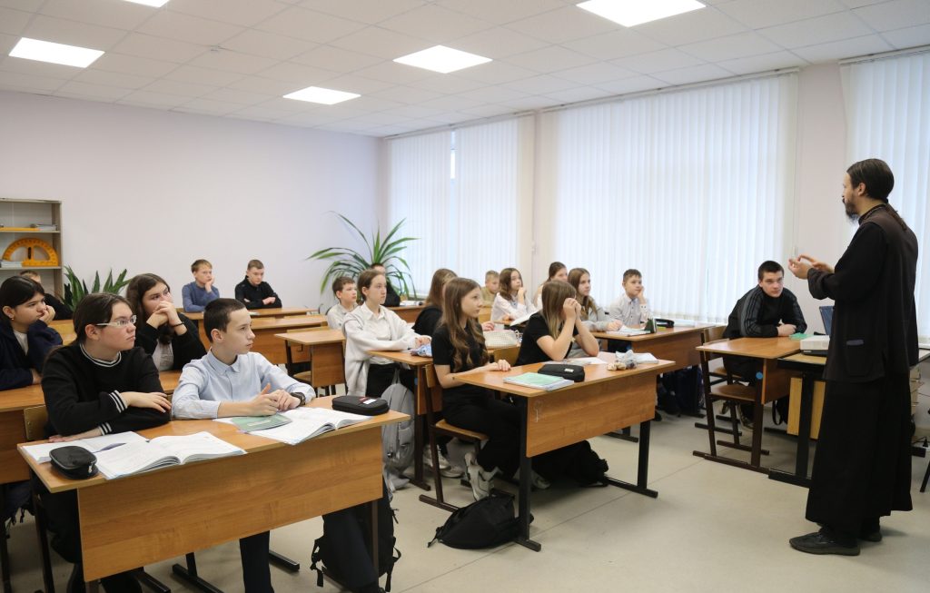 Встречи с духовенством Уваровской епархии для педагогов и учащихся Уваровского лицея стали уже доброй традицией. В рамках очередного визита корпус №3 посетил целый православный «десант» из семи представителей епархии. Гости были распределены администрацией по классам для проведения бесед с детьми. В течение часа они общались с ребятами 5-7 классов на различные темы, касающиеся как вопросов веры, так и проблем человеческих взаимоотношений, внутреннего, духовного мира человека, о том, что такое счастье, любовь, доброта и милосердие. Не обошли стороной и тему вреда сквернословия и пагубных привычек.