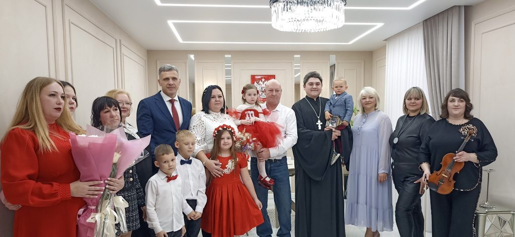 Первой парой, зарегистрировавшей брак в обновлённом помещении, стали Татьяна и Александр Кирсановы. С важным событием супругов поздравили глава города Владислав Денисов, председатель городского Совета народных депутатов Наталья Нечаева, начальник отдела ЗАГС Лидия Королёва и клирик Уваровской епархии священник Ярослав Кравченко, который благословил молодоженов и преподнес им в дар икону святых благоверных Петра и Февронии Муромских – небесных покровителей семьи и брака.
