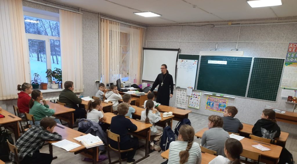Отец Иоанн рассказал детям о Заповедях Божиих — правилах, которые Бог дал людям для того, чтобы они могли различать добро и зло в своих поступках и намерениях.