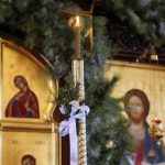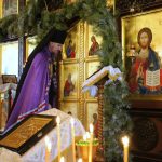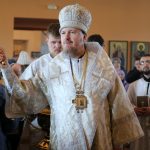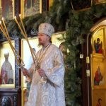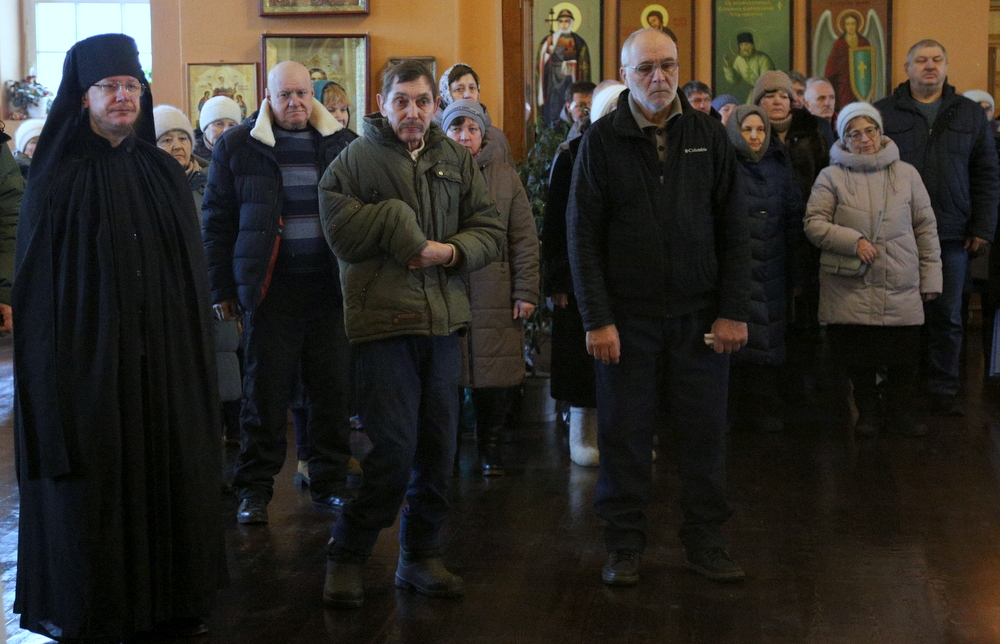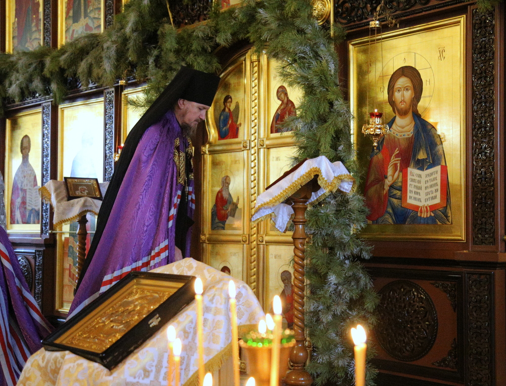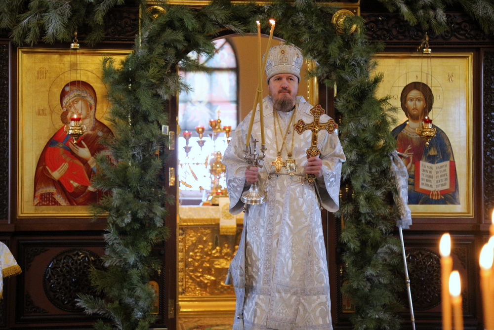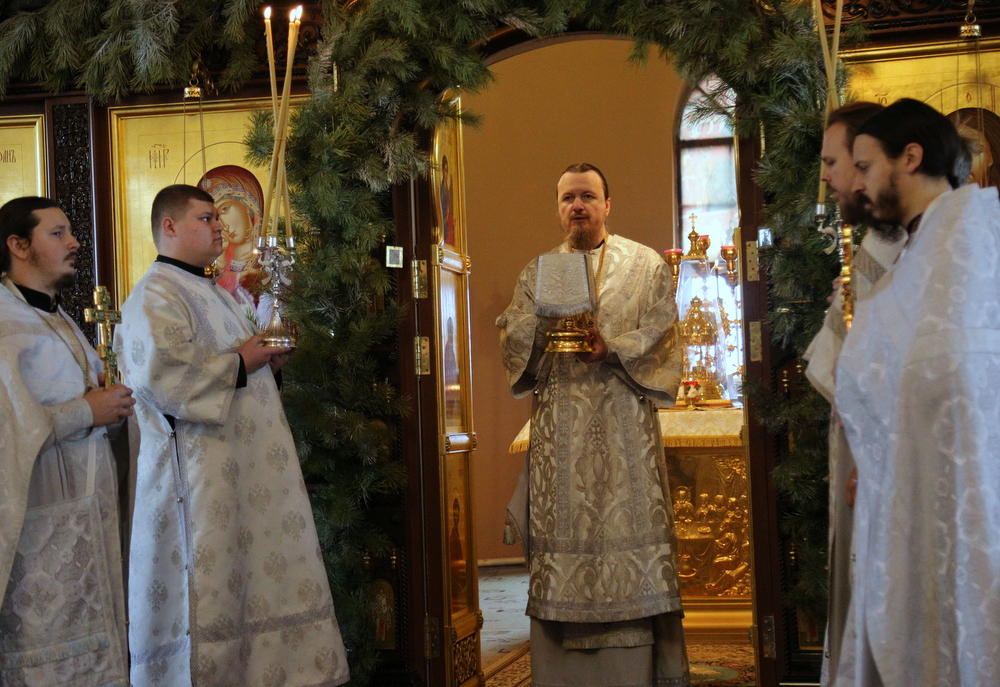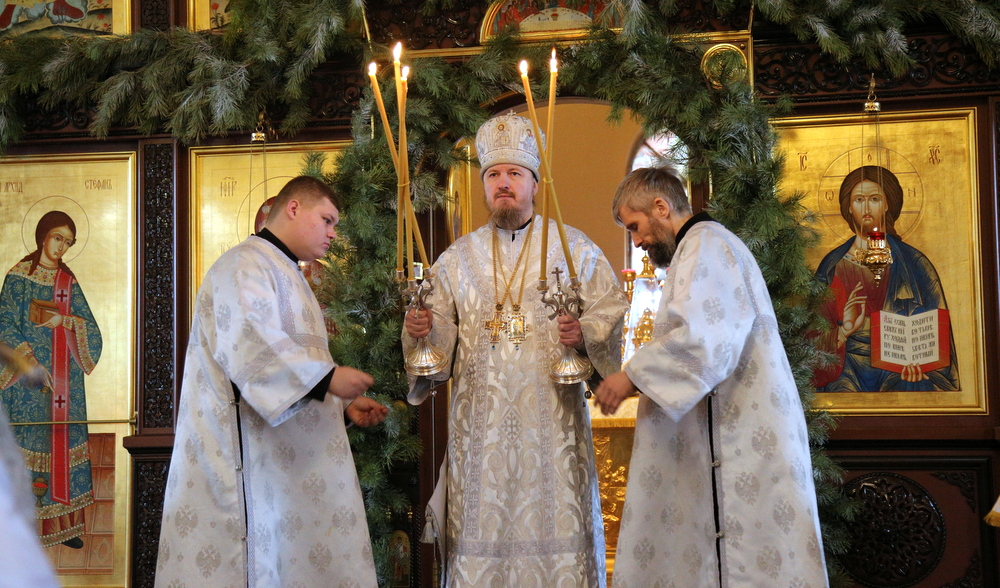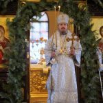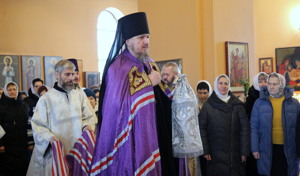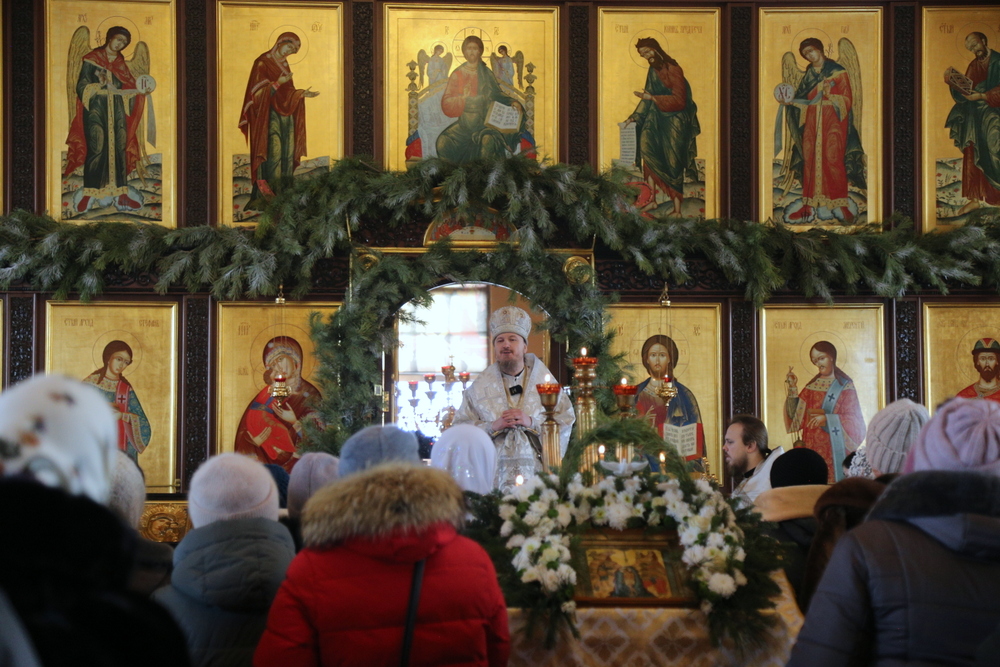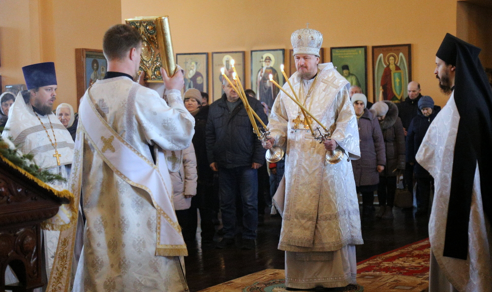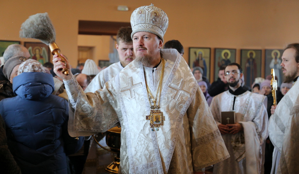 Затем правящий архиерей обратился к верующим с архипастырским словом: «Поздравляем всех с праздником Крещения Господня, ещё этот праздник называют Богоявлением, потому что в этом событии впервые нам открылась тайна Святой Троицы, когда Иоанн Предтеча во Иордане крестил Спасителя, Иисуса Христа — второе лицо Пресвятой Троицы и с неба был глас от Отца: «Сей есть Сын Мой возлюбленный, в нём же Моё благоволение» (Мф. 3: 13-17), и Дух Святой сошёл в виде голубя на Иисуса Христа, таким образом христианство говорит, что Бог наш есть Святая Троица: Отец, Сын и Святой Дух -Троица Единосущная и Нераздельная. Поэтому я вам желаю быть верными нашей матери Церкви, не грешить, приходить в храм Божий, исповедоваться, причащаться, просить у Бога прощения и мы видим по опыту нашей христианской жизни, что когда человек искренно кается в своих грехах, причащается, то как бы камень с души сходит, и ему становится легче, его посещает благодать Божия, и естество такого человека, соприкасаясь с естеством Божиим, в причащении исцеляется от греха».