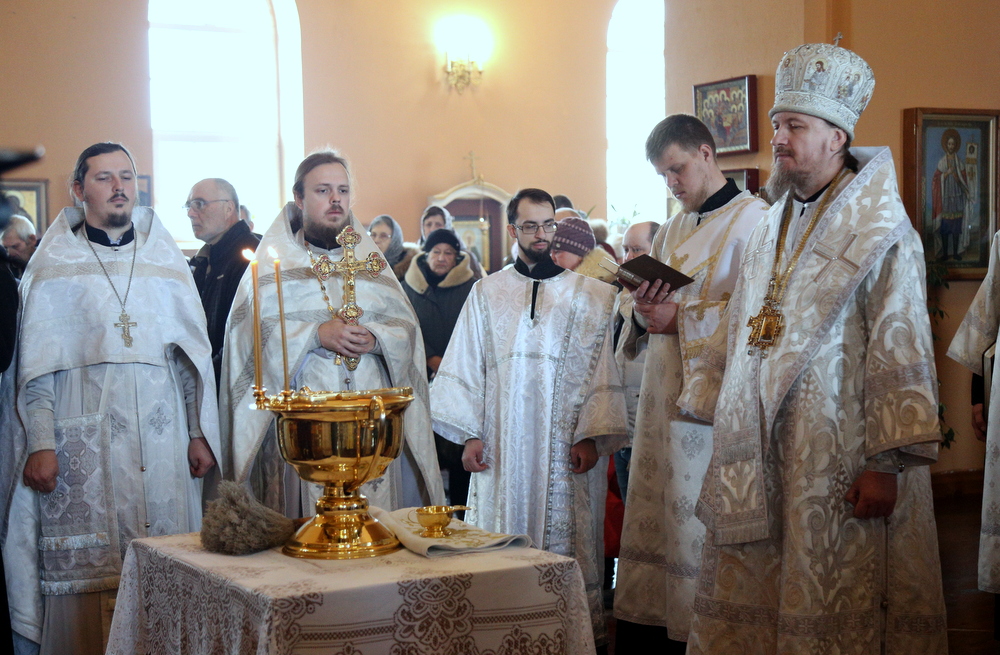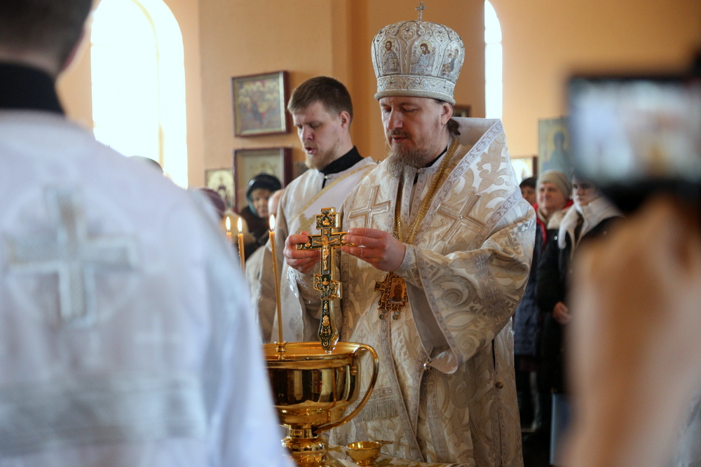 В завершение богослужения владыка Игнатий в сослужении духовенства совершил чин великого освящения воды. Совершение водоосвящения свидетельствует об обновлении и восстановлении через Христа всего творения, пораженного грехом, и служит к прославлению Бога; святая вода выступает средством освящения и вовлечения человека в общение с Богом.