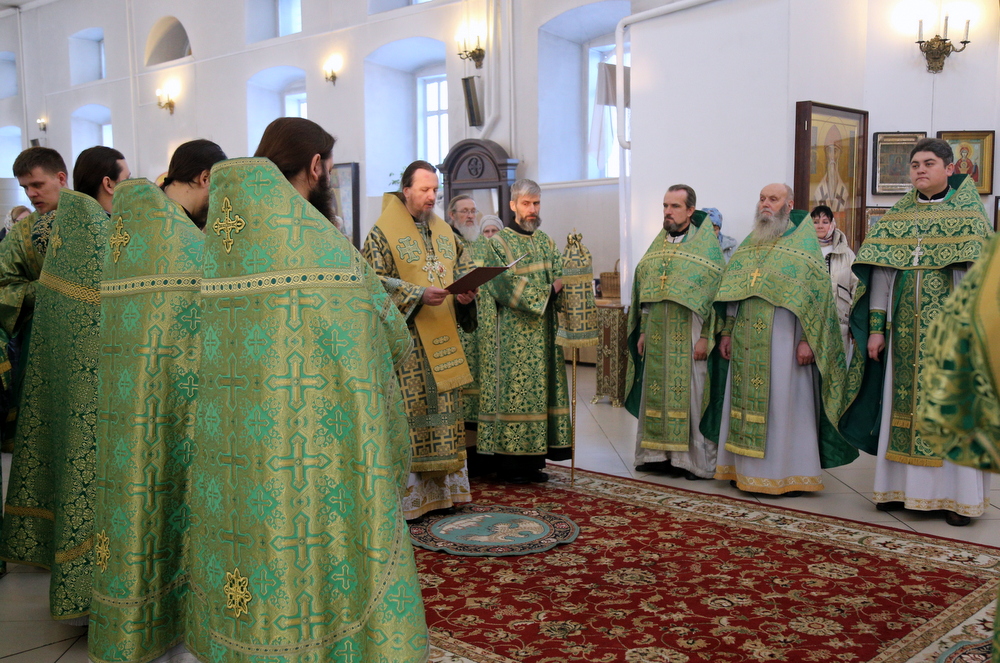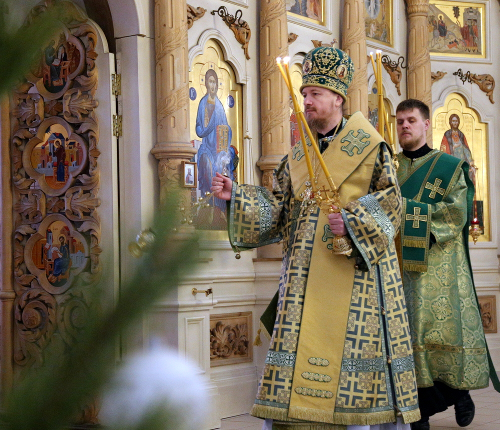 Его Преосвященству сослужили клирики собора, священники: Виктор Кончаков, Владимир Алейников, Владимир Васильев, Сергий Растрёпин, Ярослав Кравченко, иеромонах Питирим (Сухов), диаконы Сергий Демидов и Алексий Сайганов. Богослужебные песнопения исполнил архиерейский хор под управлением регента Ирины Якимовой. В этот день в Христорождественском кафедральном соборе города Уварово — престольный праздник, так как левый предел храма посвящён преподобному Серафиму Саровскому. На сугубой ектении были возглашены особые прошения об Отечестве нашем и защитниках его. После сугубой ектении была вознесена молитва о Святой Руси. По окончании Божественной литургии из алтаря для поклонения верующих епископ Игнатий вынес ковчежец с мощами преподобного Серафима Саровского, великомучениц Ирины и Екатерины. Владыка совершил торжественное славление, после которого обратился к верующим с архипастырской проповедью.