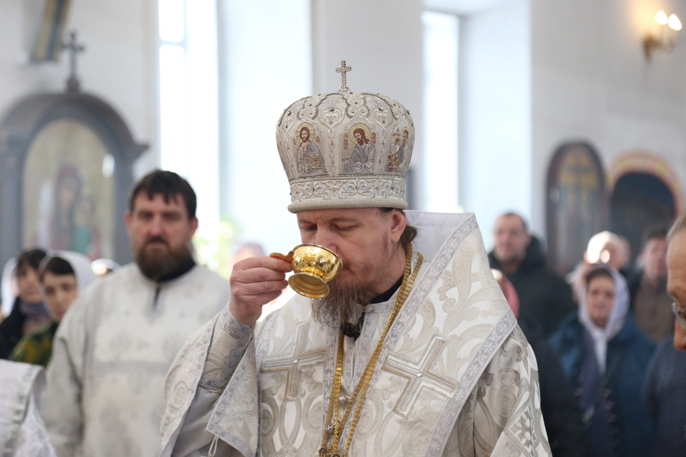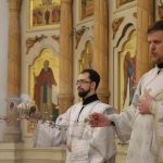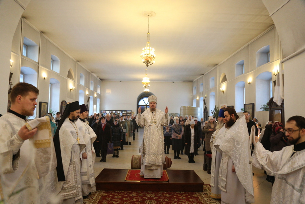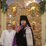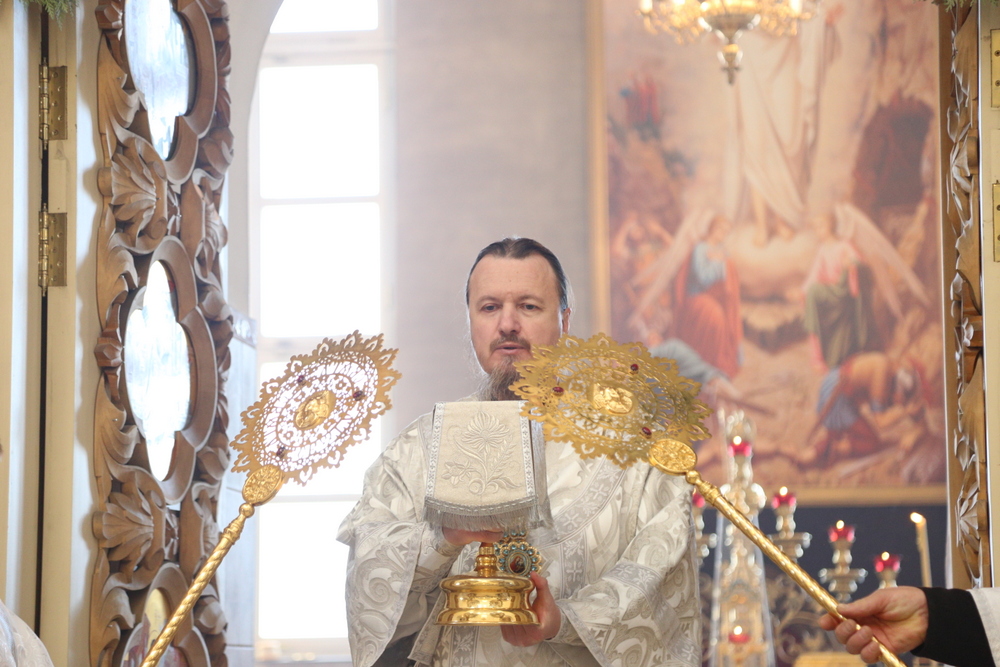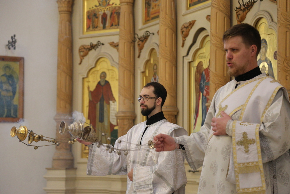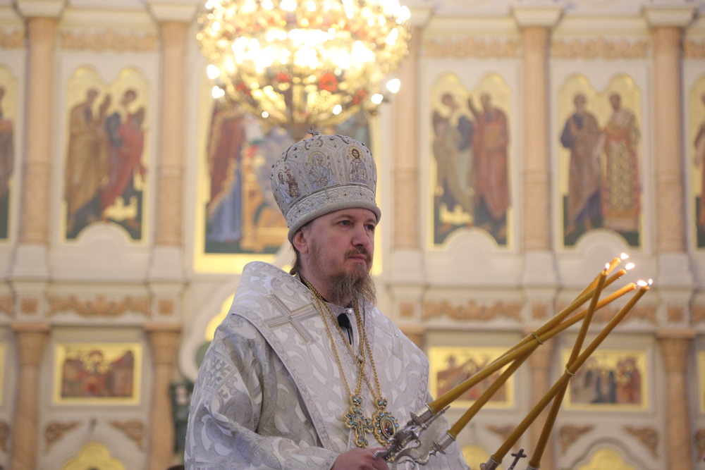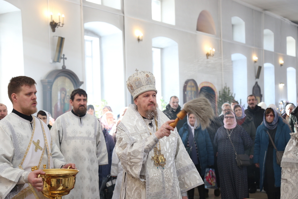 Его Преосвященству сослужили клирики собора: иеромонах Питирим (Сухов), священник Виктор Кончаков, священник Владимир Алейников, священник Владимир Васильев, священник Сергий Растрепин, дьякон Сергий Демидов и диакон Алексий Сайганов.