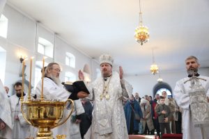 Правящий Архиерей поздравил всех с праздником и обратился к верующим со словами наставления: «Давайте стяжать Бога в нашем сердце. Исполнять то назначение, которое человек должен здесь исполнить, стать храмом для Бога. Стяжать благодать через благодетеле и победить свои страсти и грехи, а остальное все Бог приложит. Как и сказано в Евангелие: «Ищите, прежде всего, Царствие Божие и правду Его, а остальное всё Бог подаст». А Царствие Божие оно внутри нас — это мир Божией и благодать».