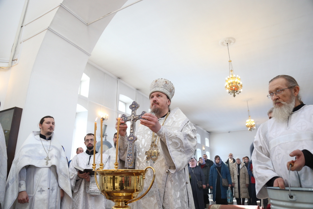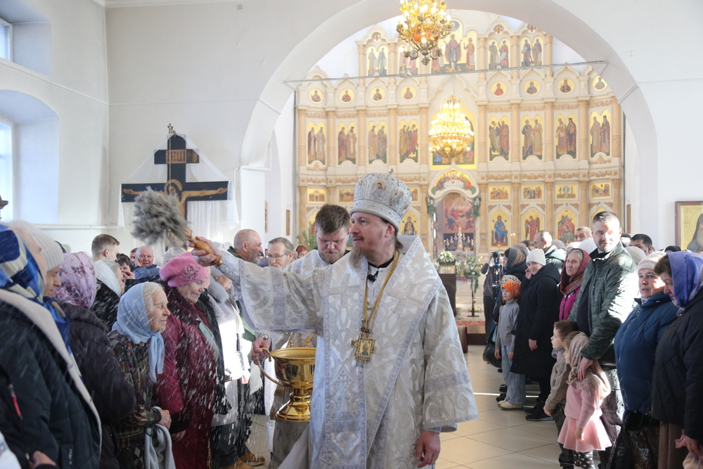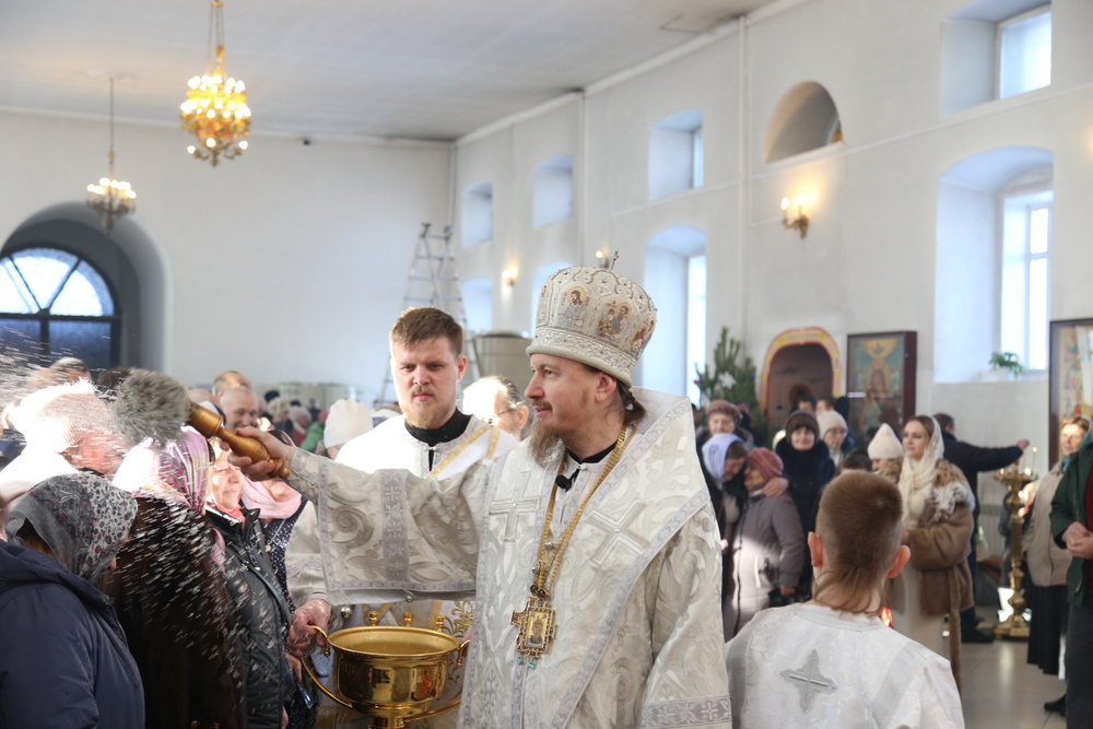В завершение богослужения владыка Игнатий совершил чин великого освящения воды и окропил святой водой всех собравшихся в храме.