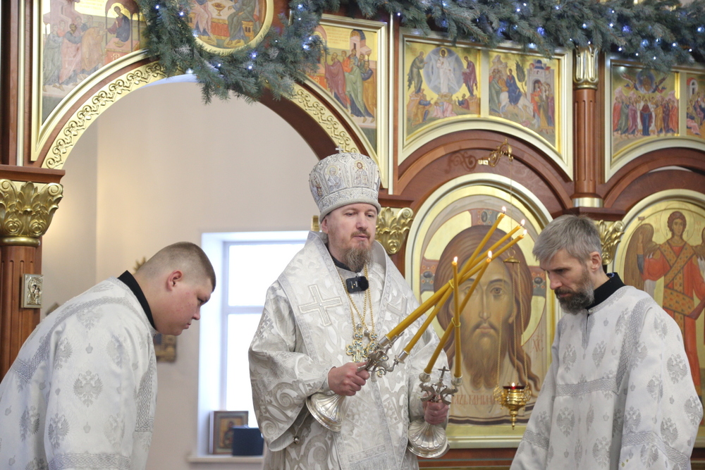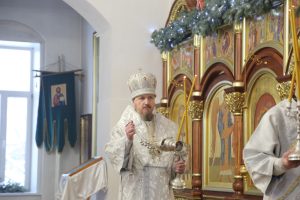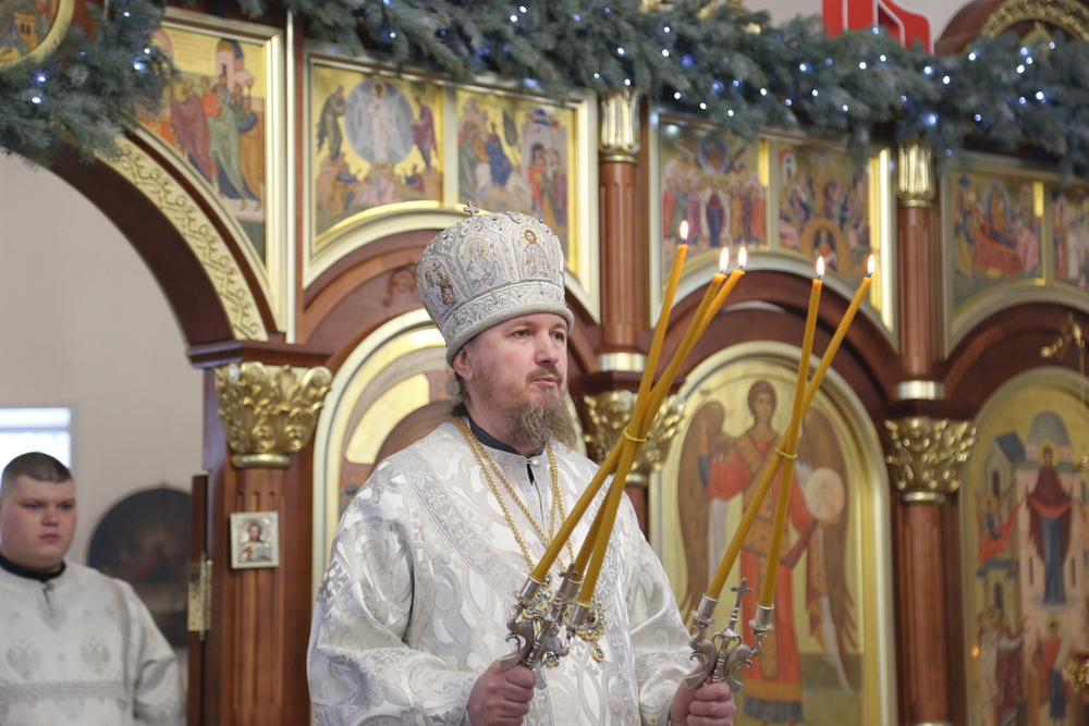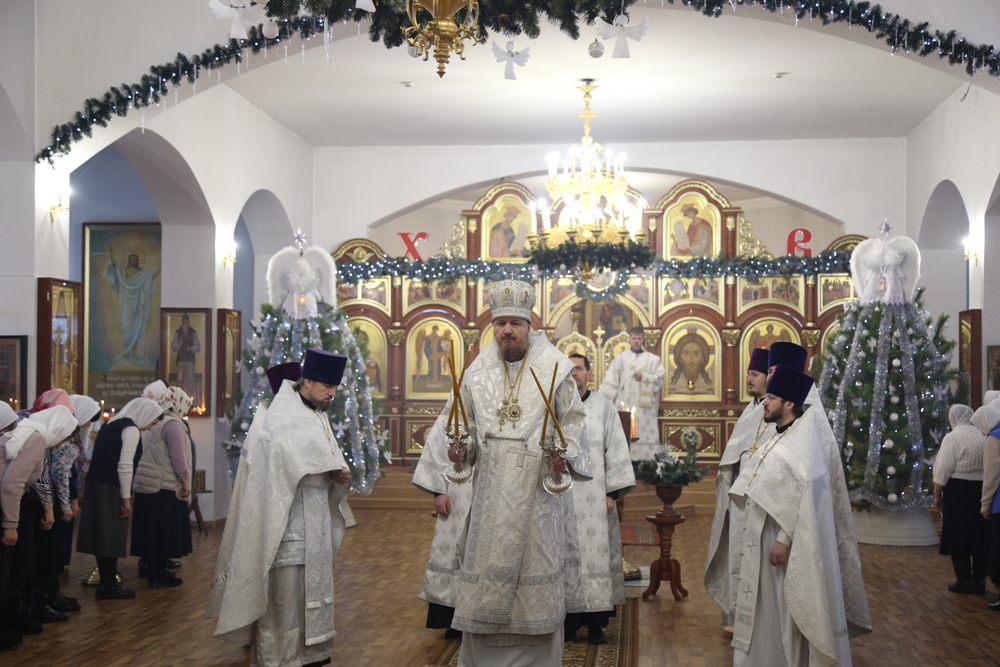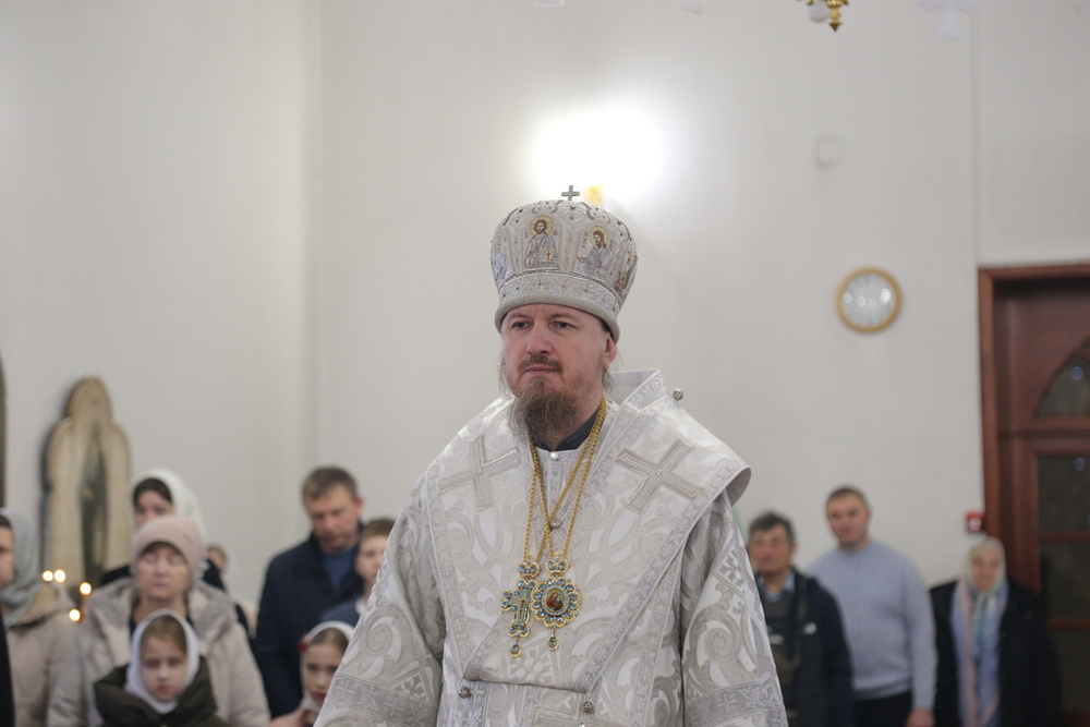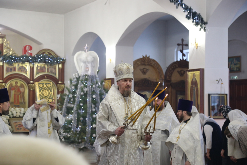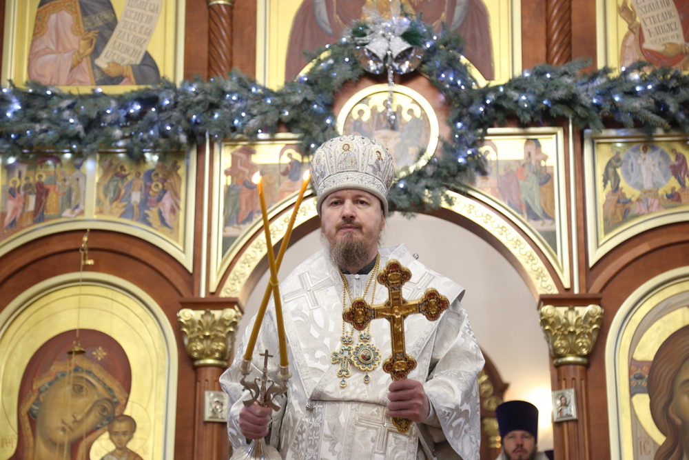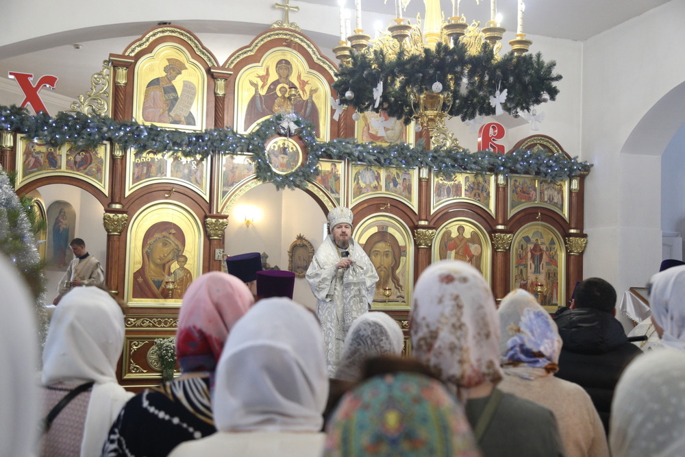 По завершении Богослужения владыка Игнатий обратился к верующим с архипастырским словом, в котором поздравил прихожан с Великим праздником Рождества Христова.