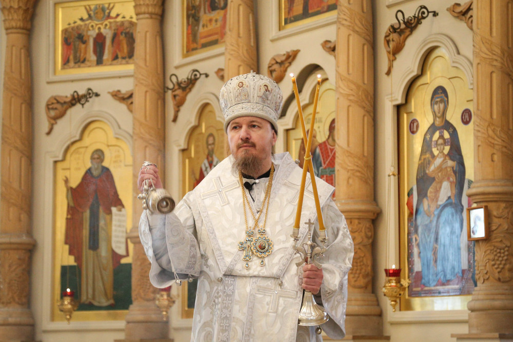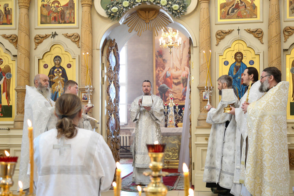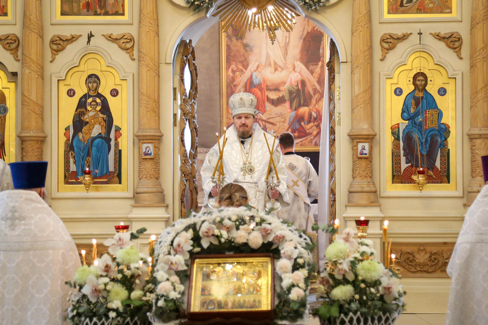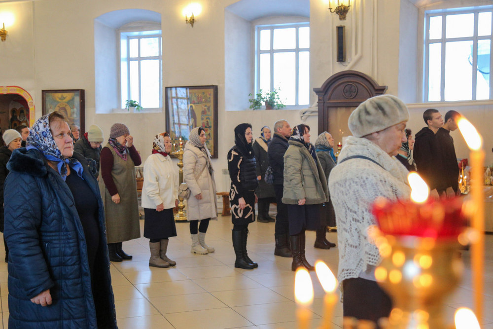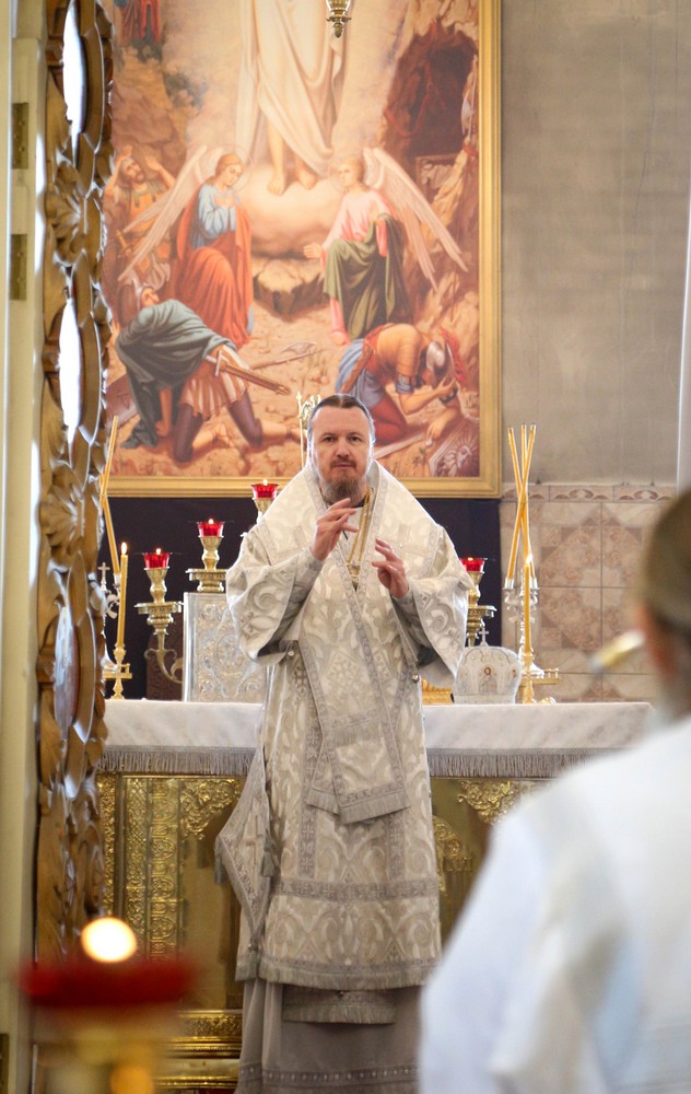 Его Преосвященству сослужили клирики собора: священник Виктор Кончаков, священник Владимир Васильев, священник Алексий Тишкин и диакон Сергий Демидов.
