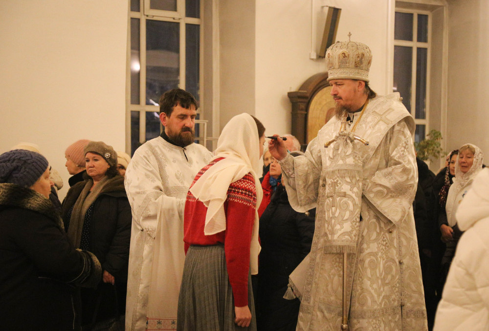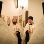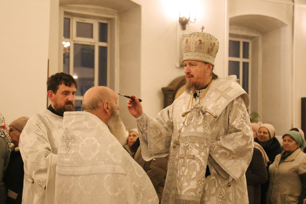 Его Преосвященству сослужили клирики собора: священник Виктор Кончаков, священник Владимир Алейников, священник Владимир Васильев, священник Сергий Растрёпин, диакон Сергий Демидов и диакон Алексий Сайганов.