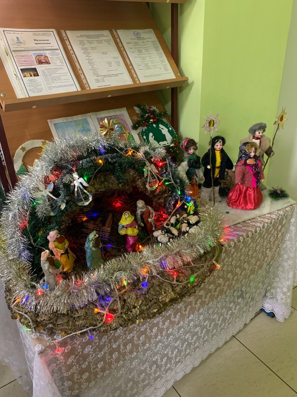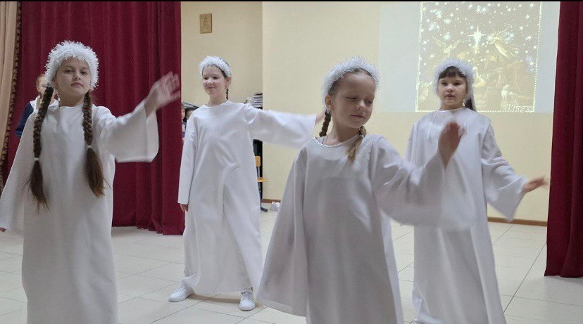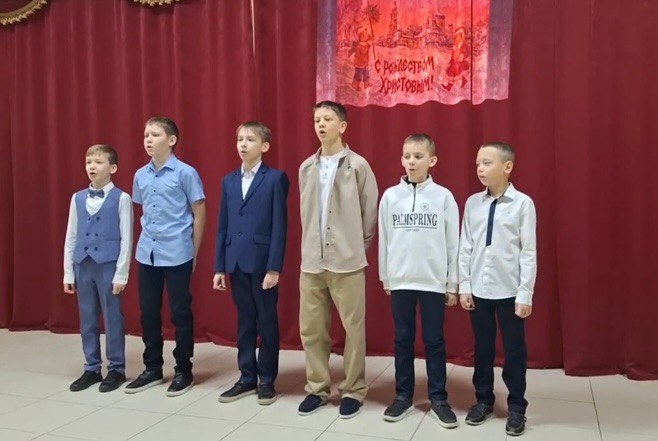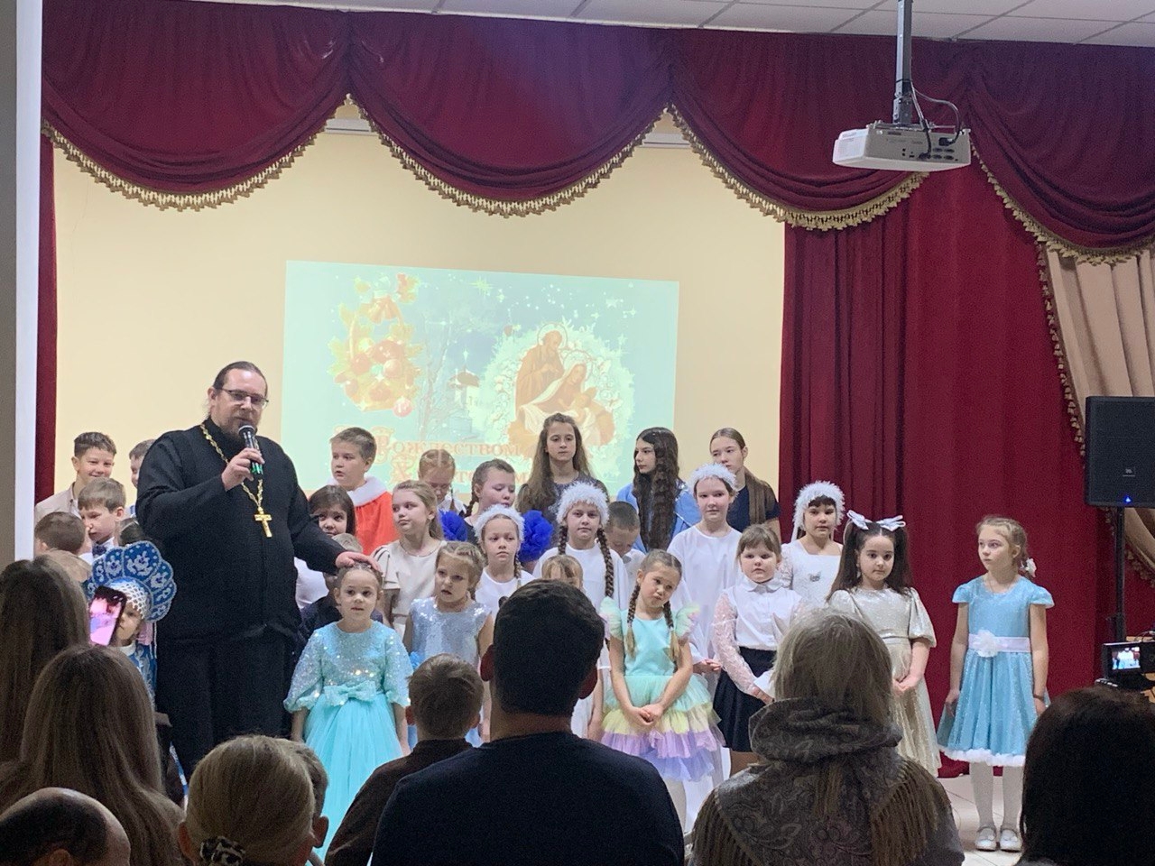 Затем воспитанники воскресной школы в стихах и песнях прославили рожденного Спасителя — Иисуса Христа.