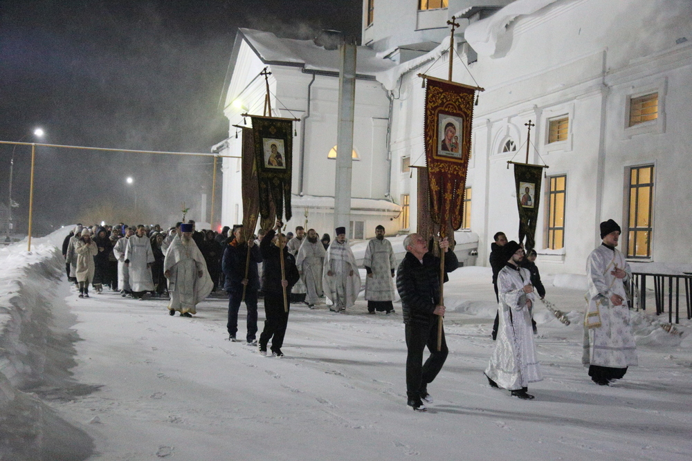 Торжественное богослужение началось Крестным ходом вокруг Христорождественского кафедрального собора. В полночь после совершения часов началась Божественная литургия.