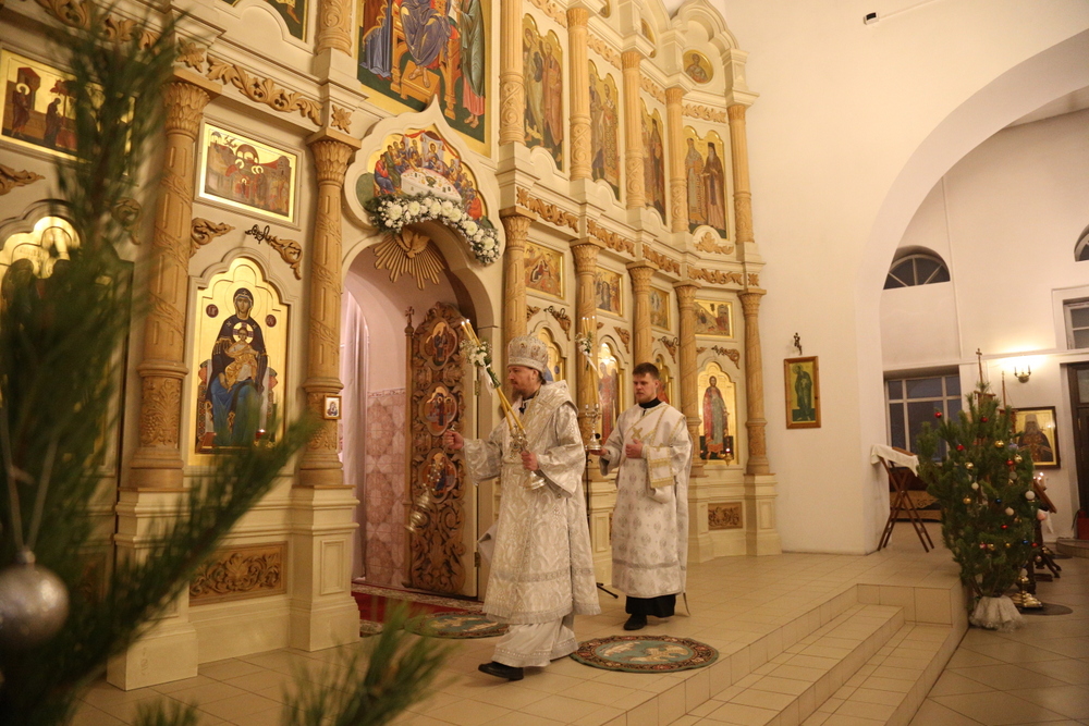 В праздник Рождества Господа Бога и Спаса нашего Иисуса Христа, в ночь с 6 на 7 января, епископ Уваровский и Кирсановский Игнатий совершил Божественную литургию в Христорождественском кафедральном соборе города Уварово.