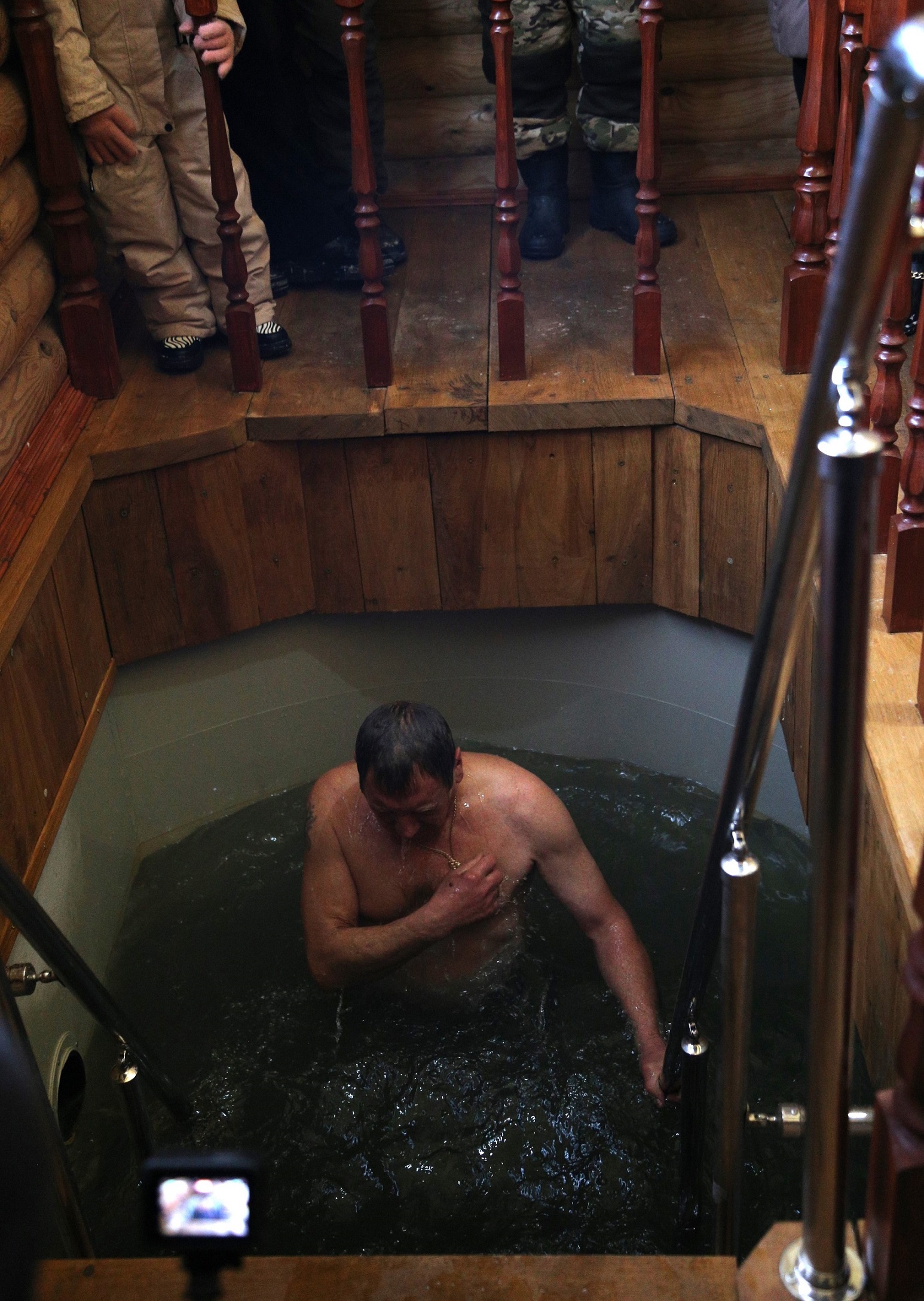 После освящения купели первыми окунулись в воду участники строительства. Совершить омовение в новой купели могут все желающие.
