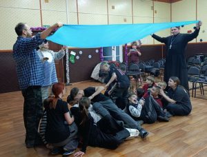 Очередная встреча, также, как и все остальные, была доброй, веселой и шумной. Ребята и гости участвовали в совместных играх, где смогли проявить свою ловкость, сообразительность и быстроту реакции. Подобное общение помогает детям отвлечься от повседневных занятий в школе, бытовых дел. Ребята смогли также пообщаться со священниками и получить доброе слово индивидуально.