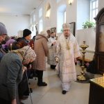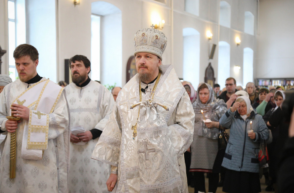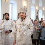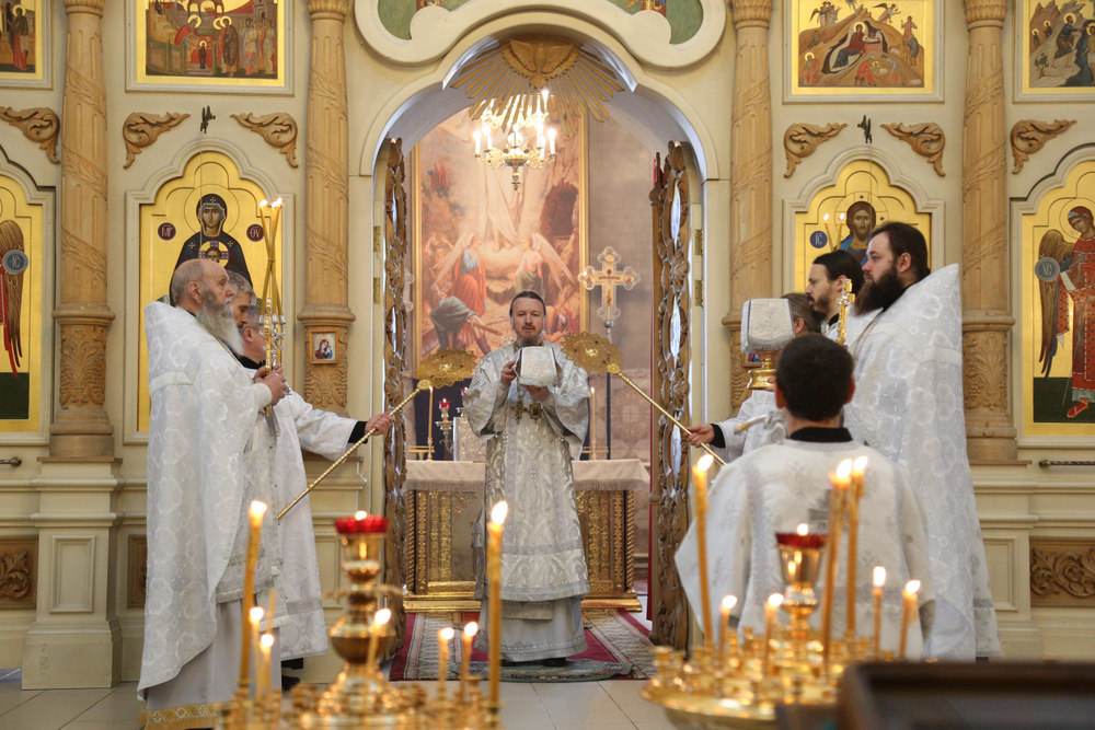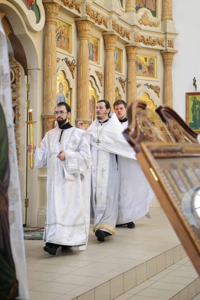 Его Преосвященству сослужили клирики собора: священник Виктор Кончаков, священник Владимир Васильев, священник Сергий Растрёпин, иеромонах Питирим (Сухов), диаконы Сергий Демидов и Алексий Сайганов.