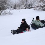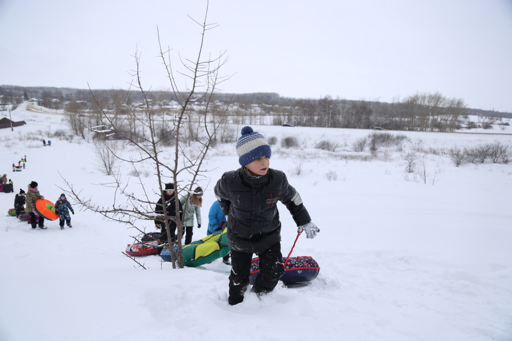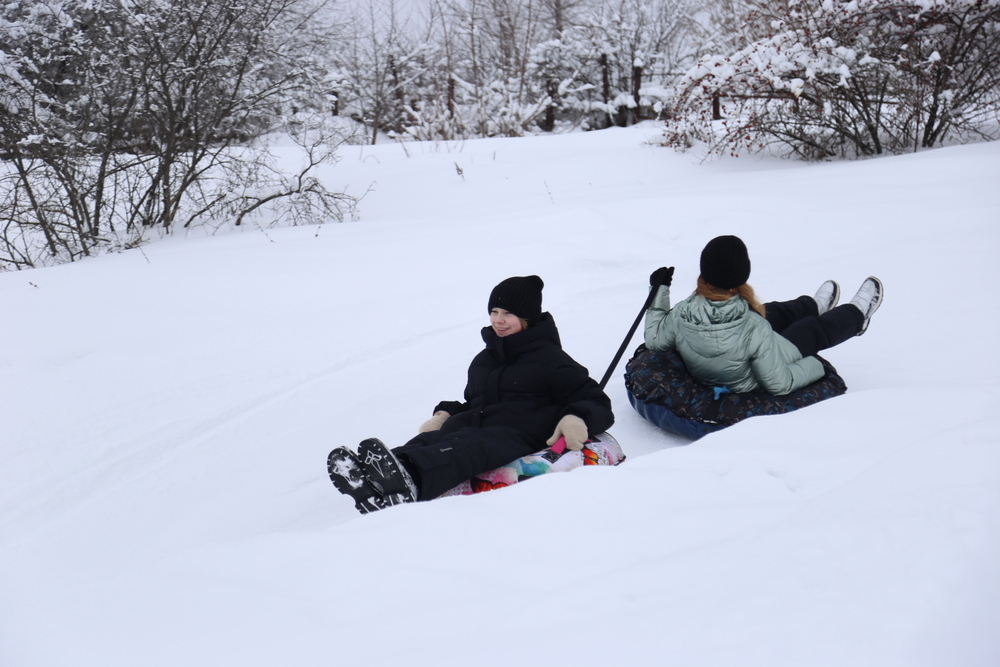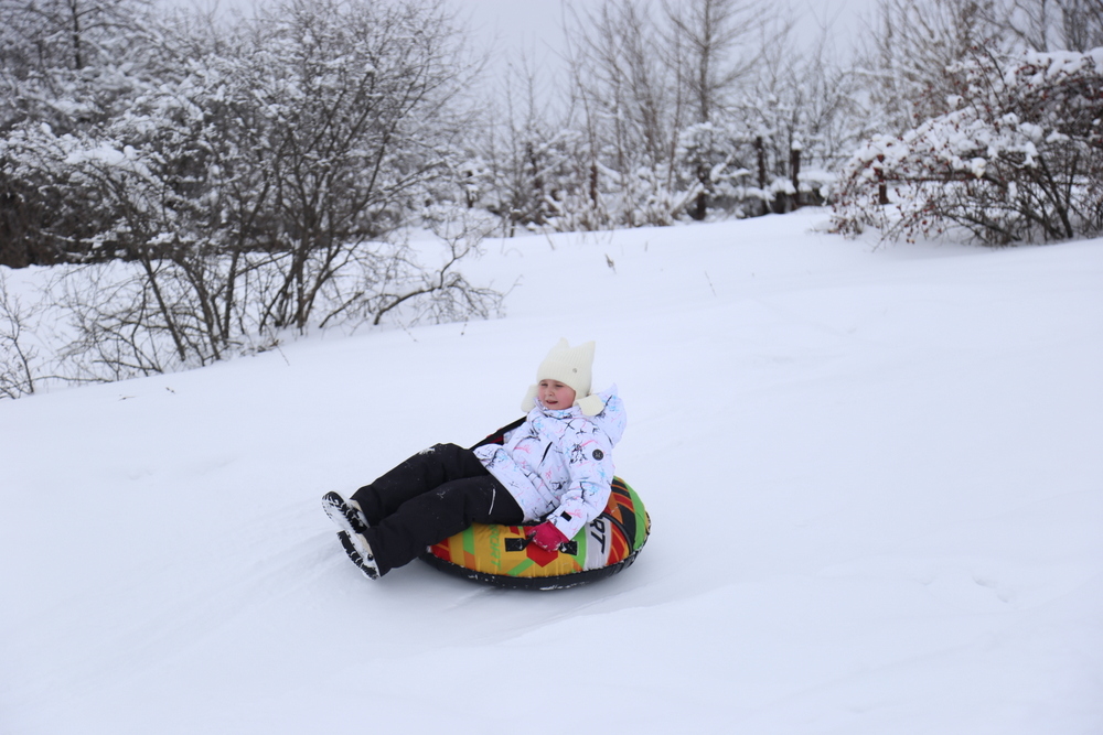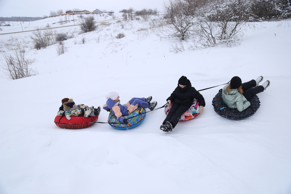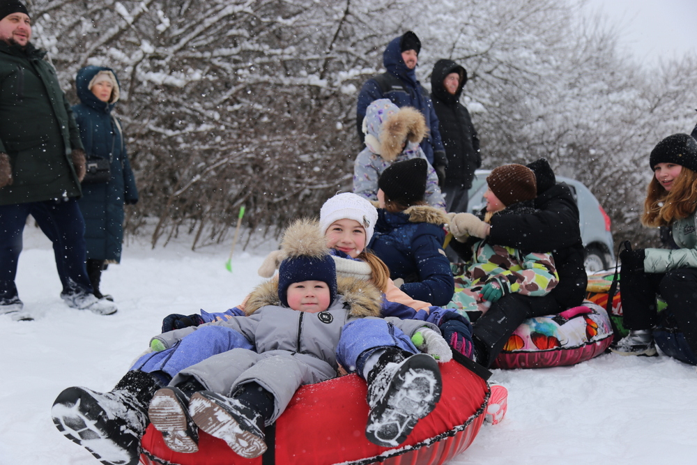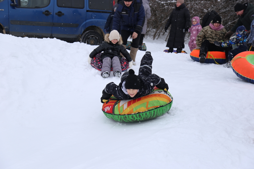 Особое внимание привлекла традиционная русская зимняя забава — катание с горы. Дети радостно съезжали с нее на разноцветных тюбингах, создавая атмосферу радости и веселья. Родители активно поддерживали своих малышей, подбадривая их криками и аплодисментами.