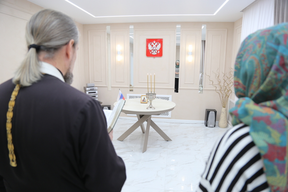 По окончании молебна, отец Владимир обсудил с начальником отдела ЗАГС Лидией Королевой вопросы дальнейшего взаимодействия и сотрудничества.