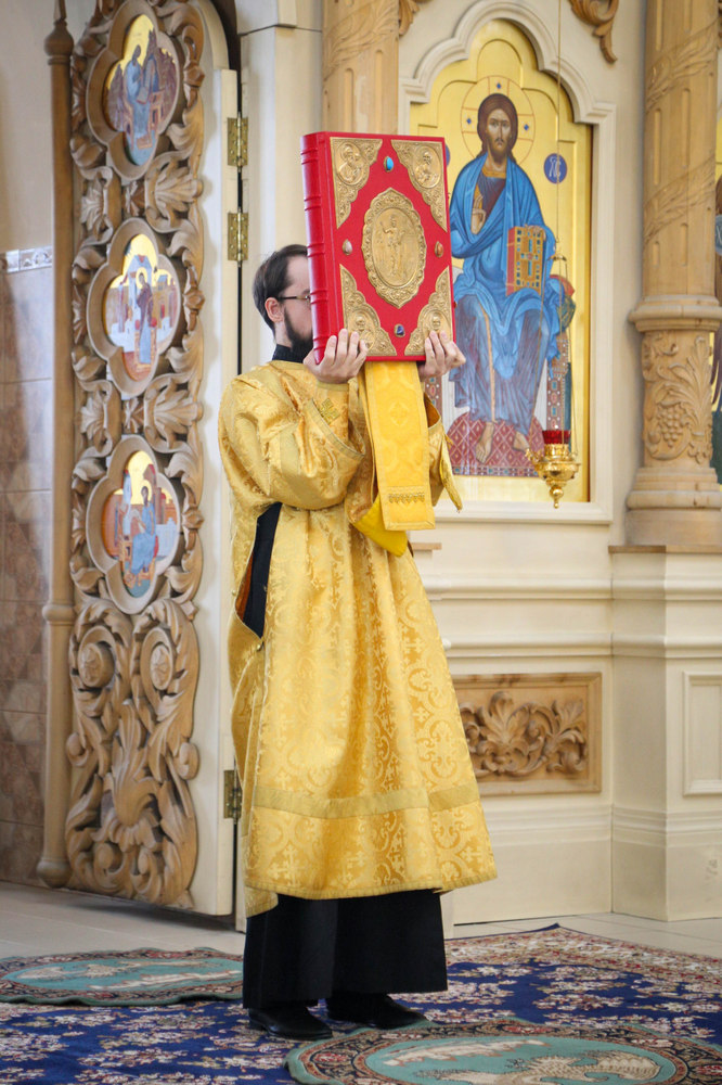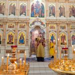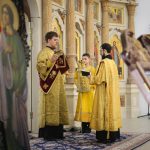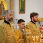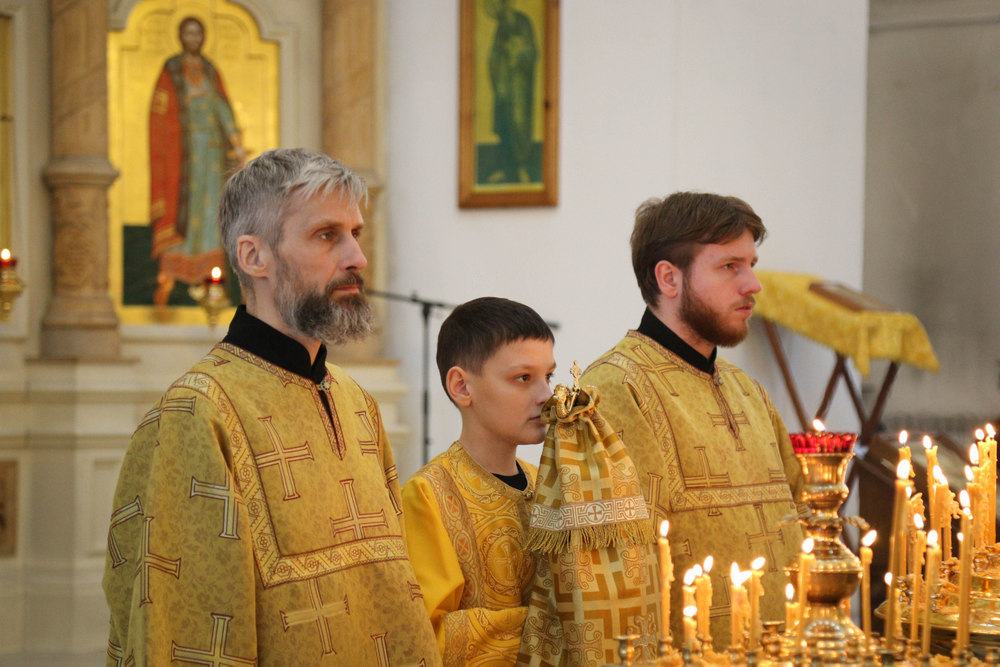 Его Преосвященству сослужили клирики собора: священник Виктор Кончаков, священник Владимир Васильев, священник Сергий Растрёпин, иеромонах Питирим (Сухов), диакон Сергий Демидов и диакон Алексий Сайганов.