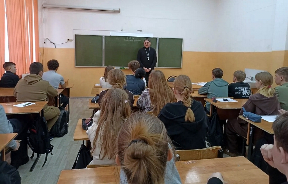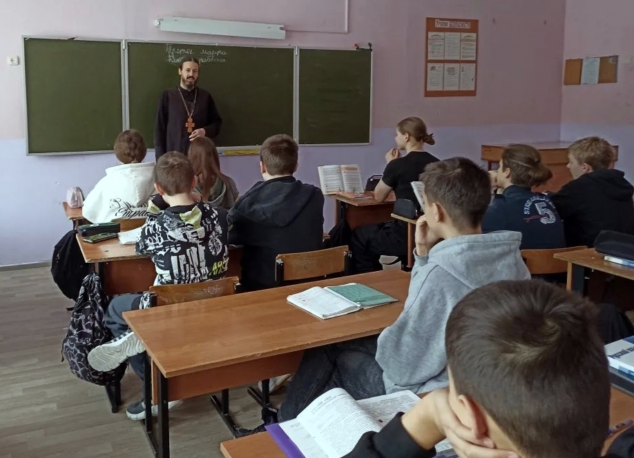 3 марта в МБОУ «Жердевская СОШ» (2-е здание) в рамках Всероссийского проекта от Движения Первых «Классные встречи» прошёл необычный и очень важный разговор. К ребятам «высадился» настоящий духовный десант. В гостях у школьников побывали: благочинный Жердевского благочиния священник Иоанн Минаев, руководитель миссионерского отдела Уваровской епархии иеромонах Питирим (Сухов) и сотрудник миссионерского отдела епархии священник Ярослав Кравченко, а также насельник возрождающегося Спасо-Преображенского мужского монастыря поселка Демьян Бедный монах Дамаскин (Киреев).