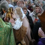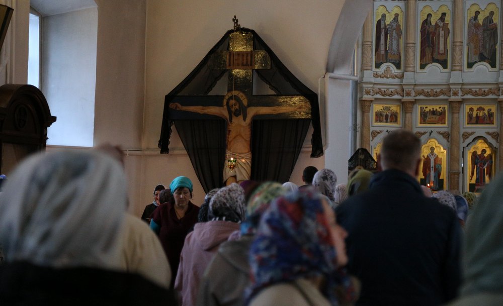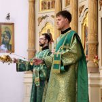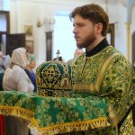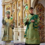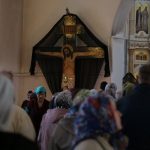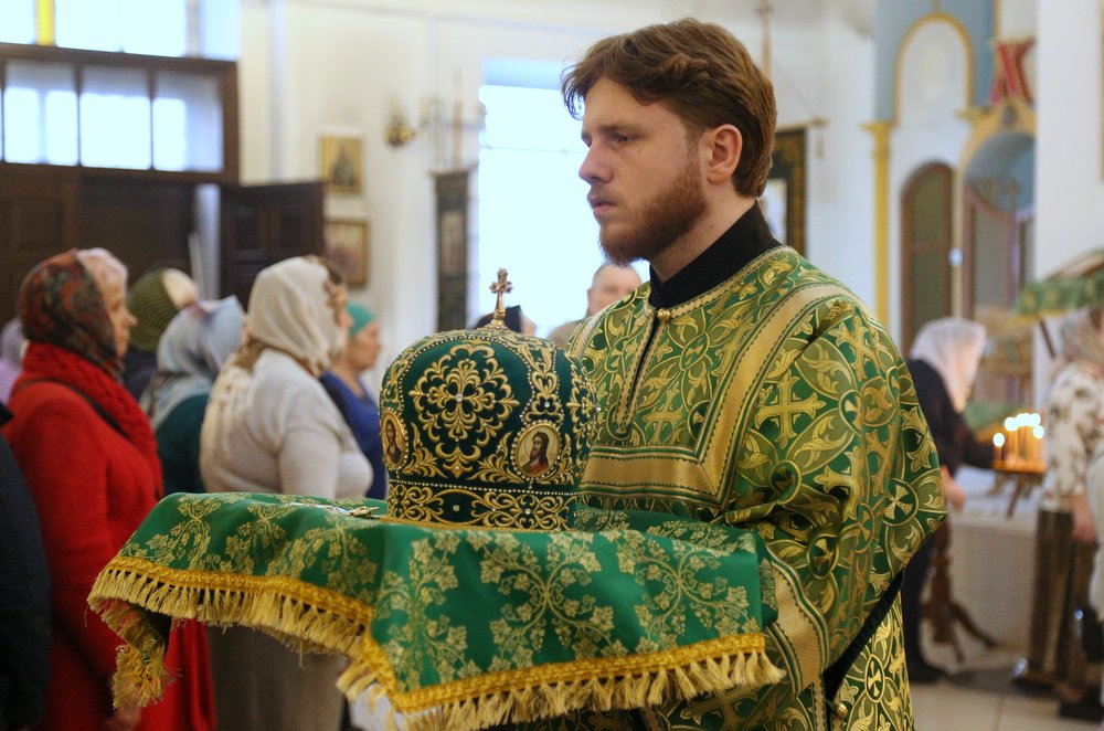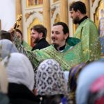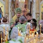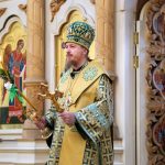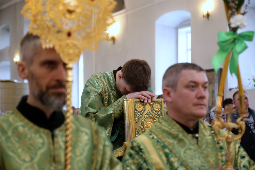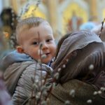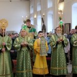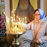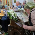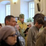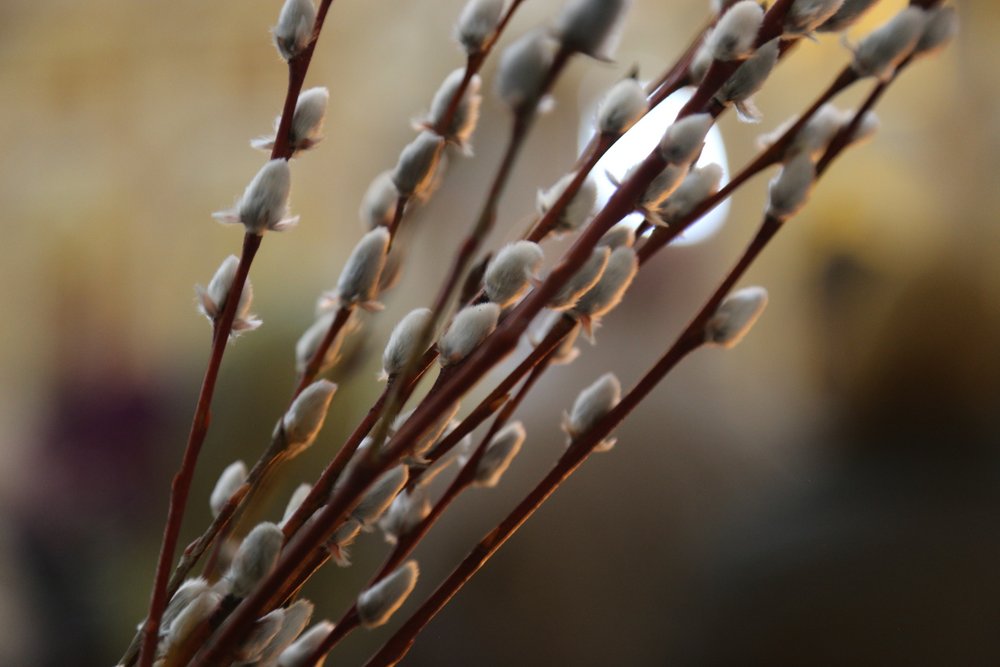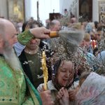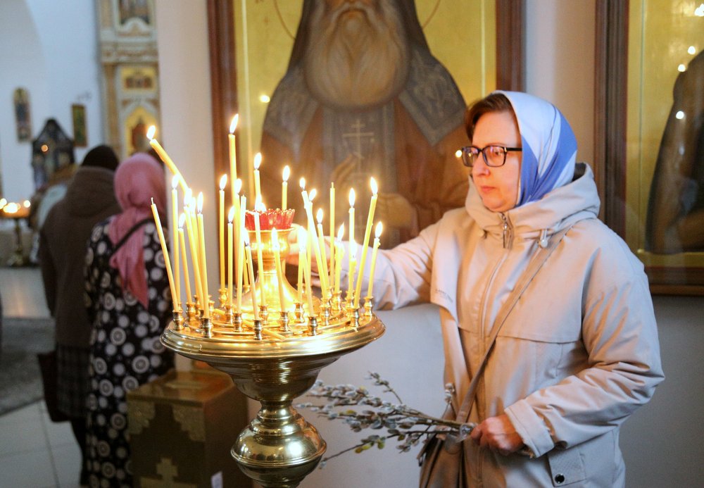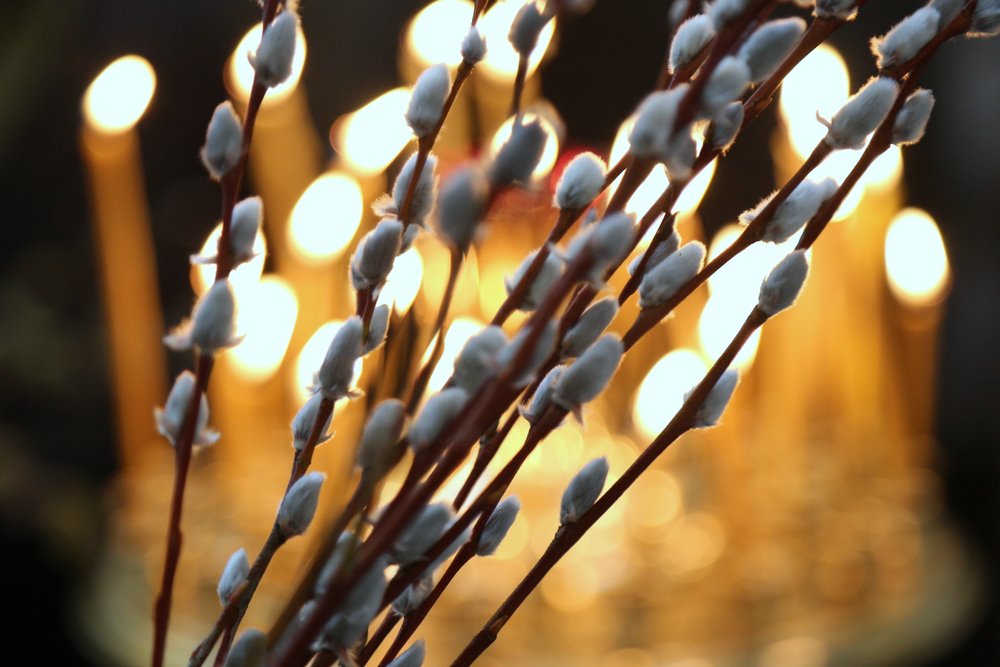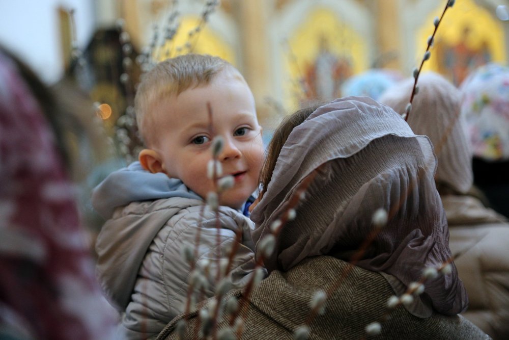 По православной традиции в этот праздник прихожане кафедрального собора пришли на богослужение с ветвями вербы, которые были окроплены святой водой.