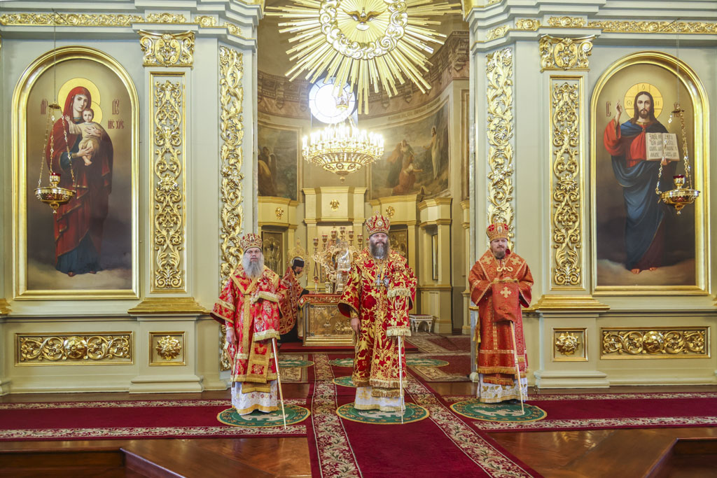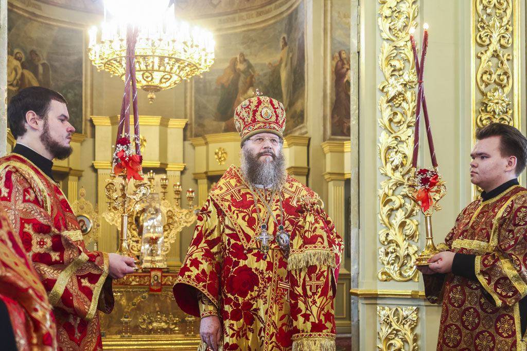В завершение богослужения Его Высокопреосвященство поприветствовал всех собравшихся словами древнего апостольского приветствия: «Христос Воскресе!» и обратился к верующим с архипастырским словом.
