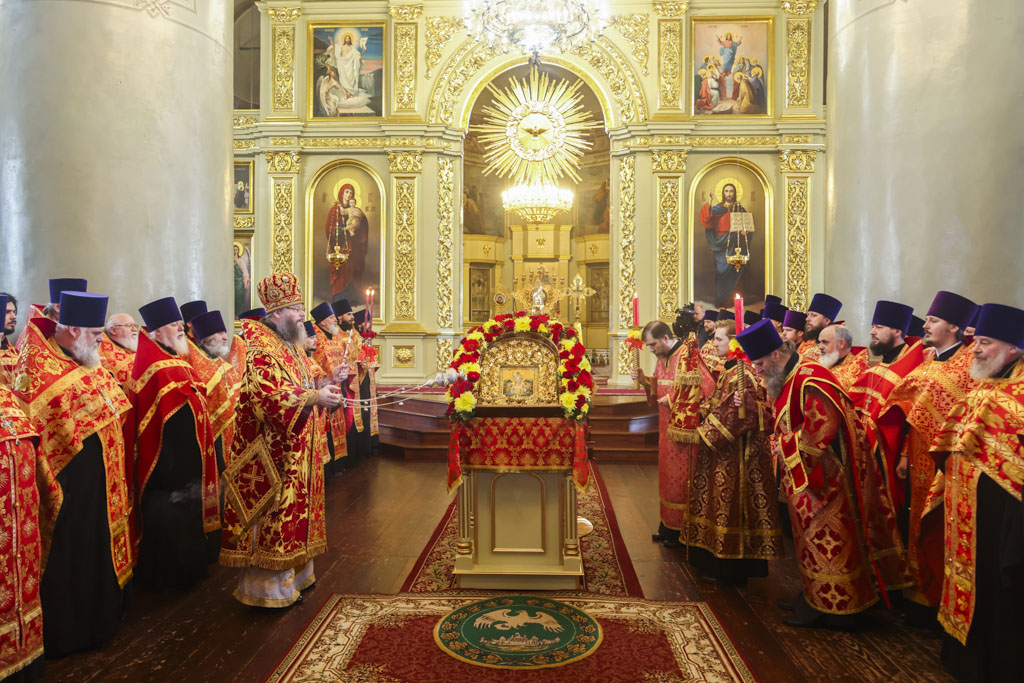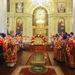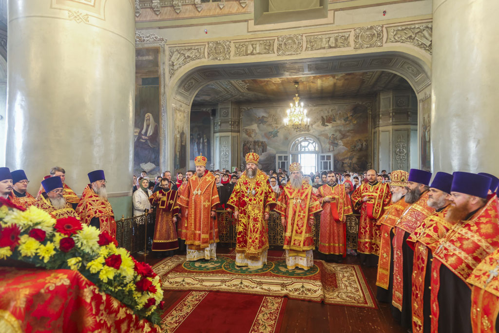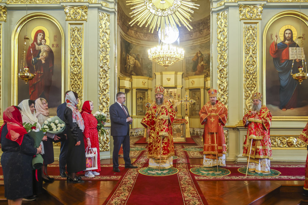 По прибытии в храм перед началом богослужения глава Тамбовской митрополии поклонился мощам святителя Питирима, епископа Тамбовского.